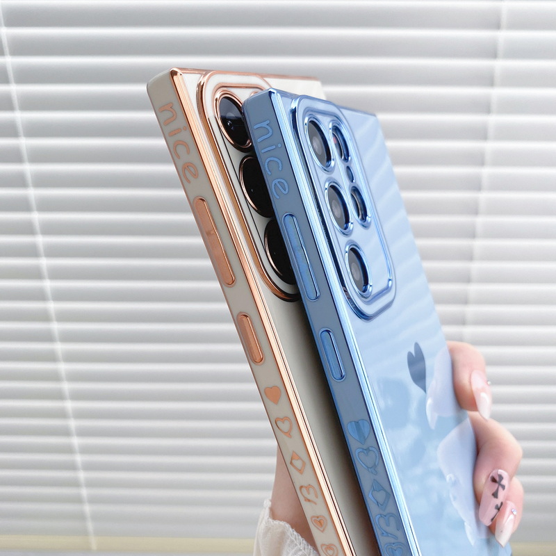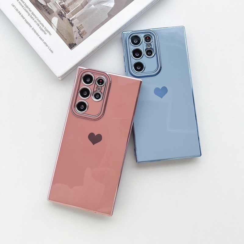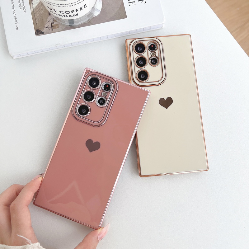 For Samsung S22 Ultra S21 S20 FE A53 A13 Love Heart Plating Silicone Case Cover