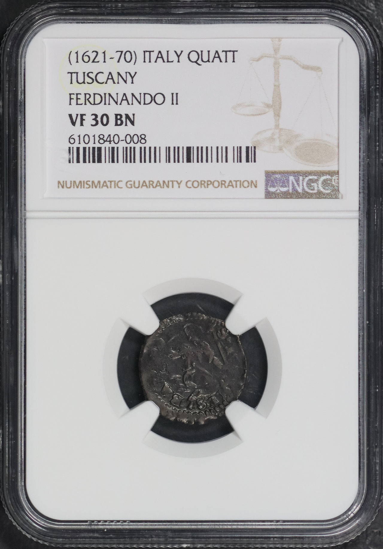 (1621-70) Italy Tuscany Ferdinando II Quattrino NGC VF-30 BN.