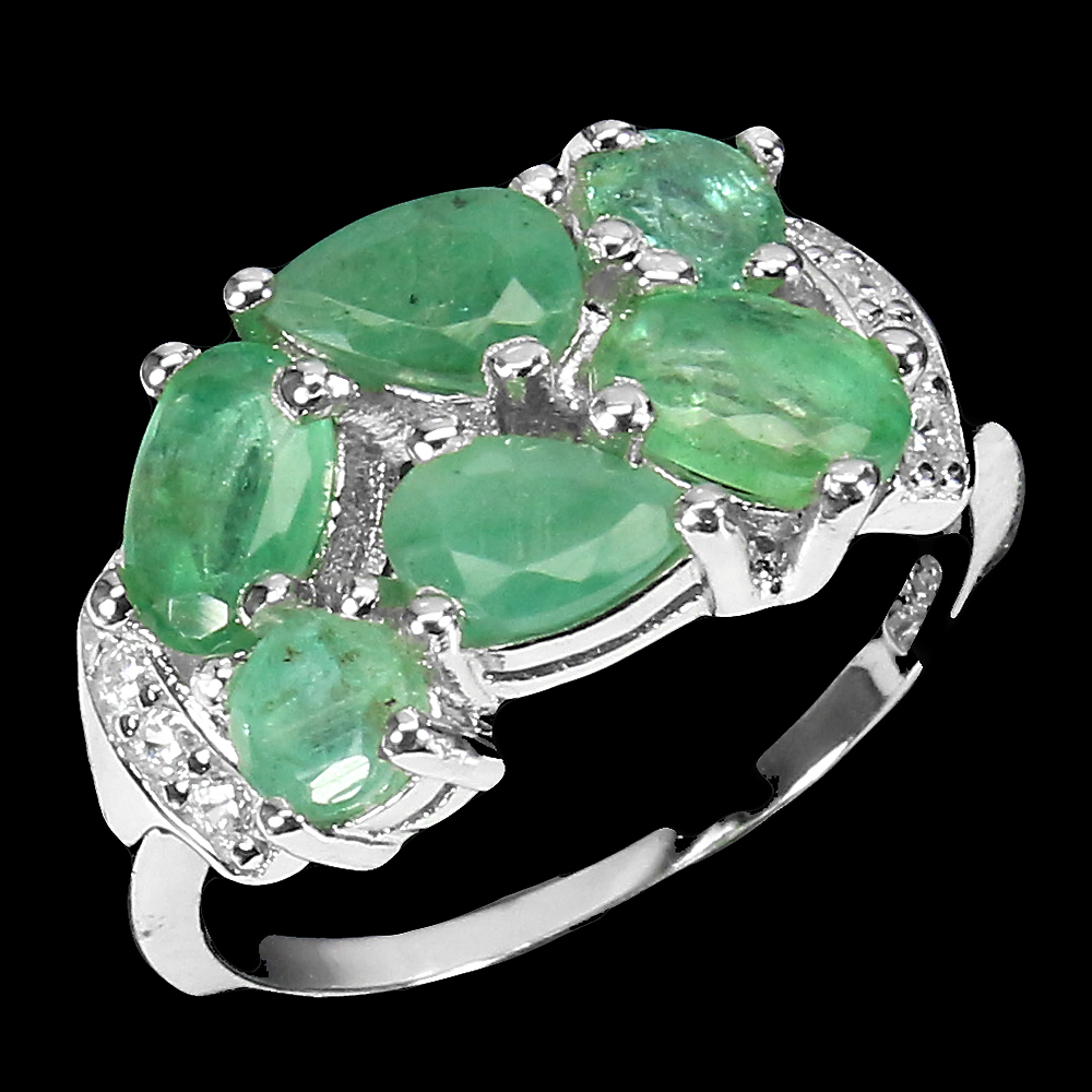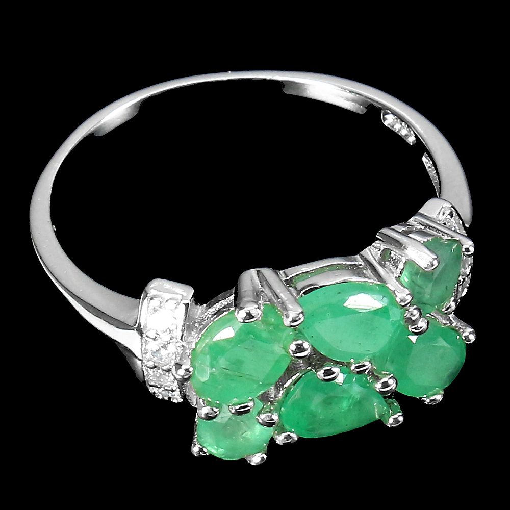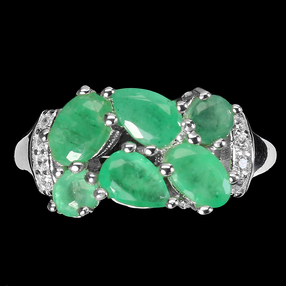 Unheated Oval Green Emerald 6x4mm Simulated Cz 925 Sterling Silver Ring Size 9