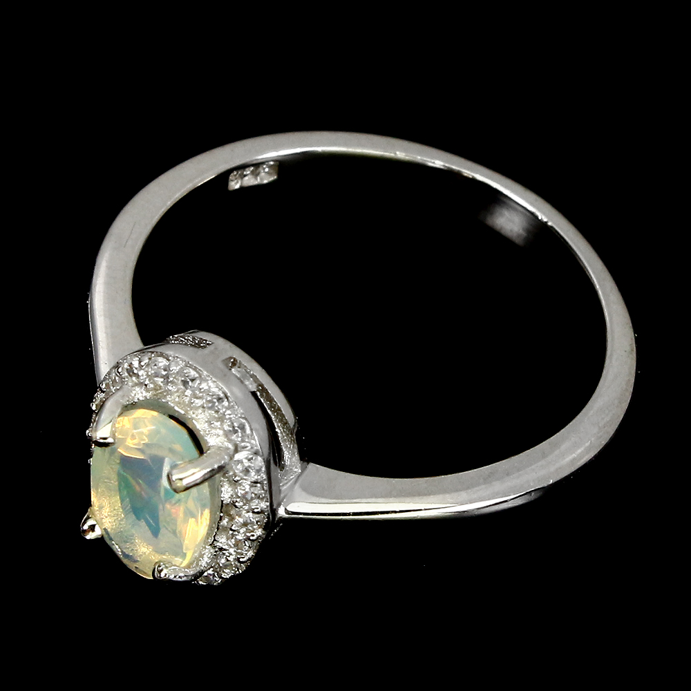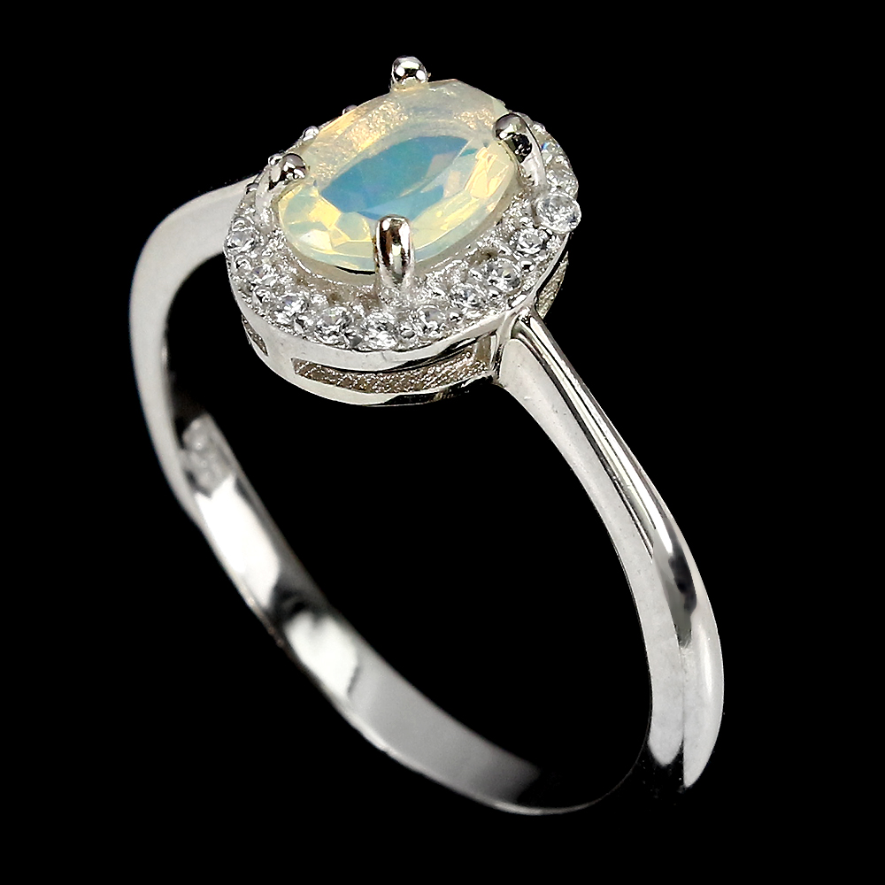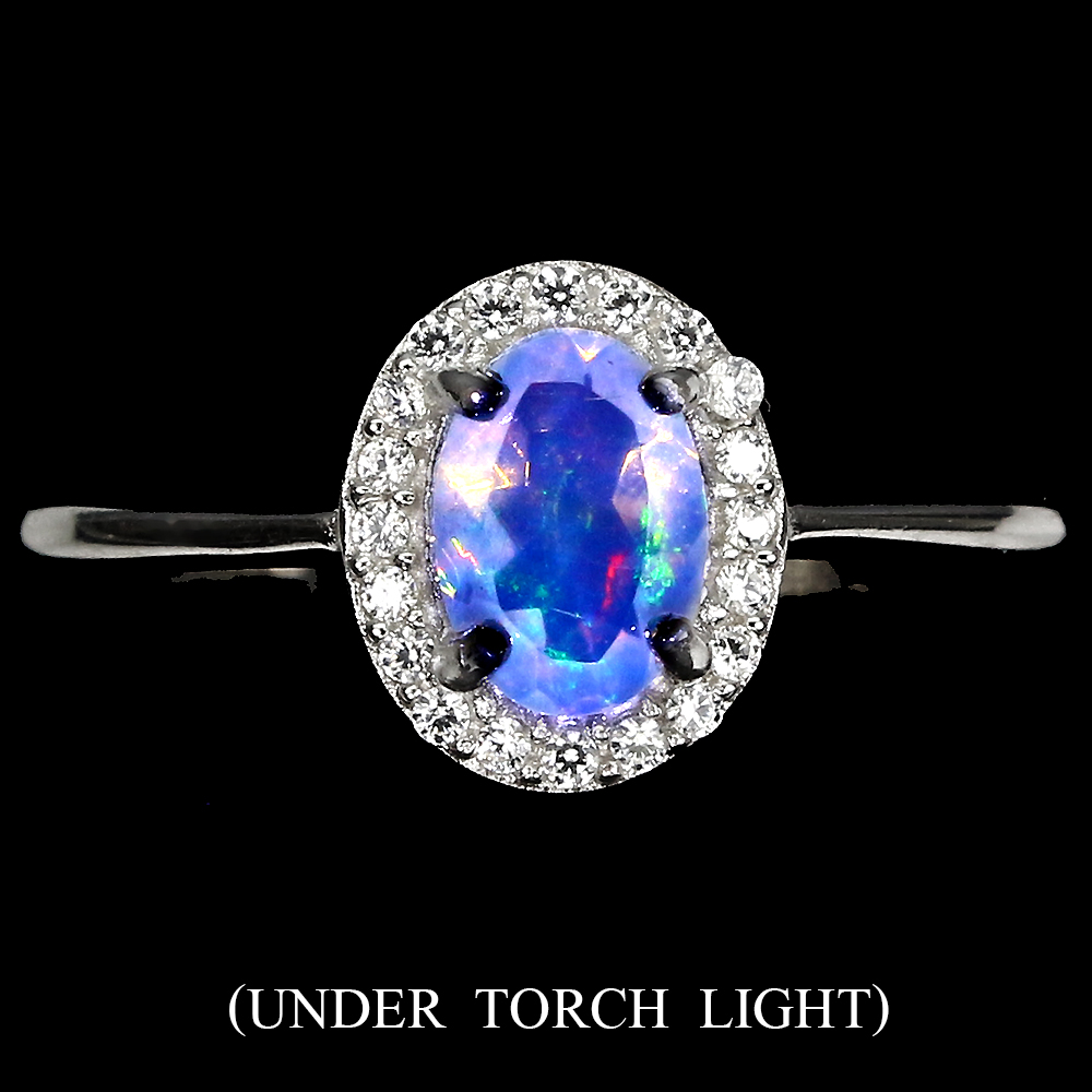 Unheated Oval Fire Opal 7x5mm 14K White Gold Plate 925 Sterling Silver Ring 7
