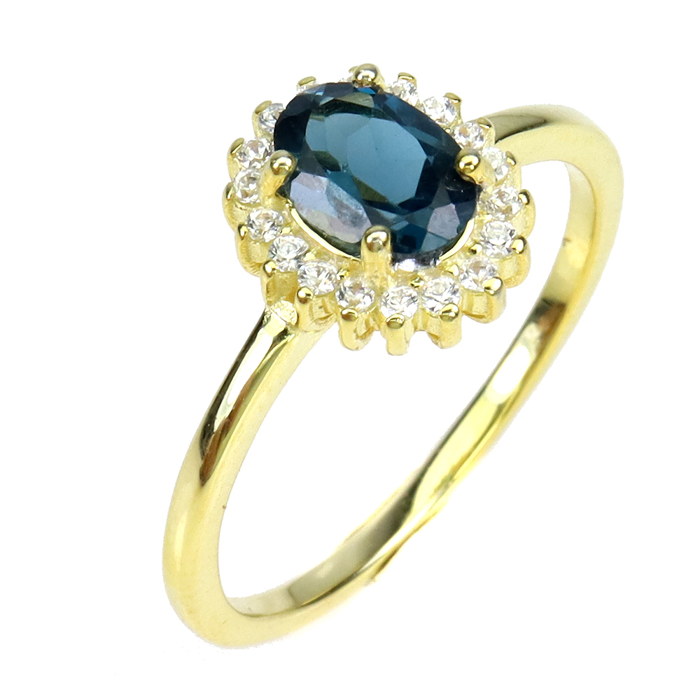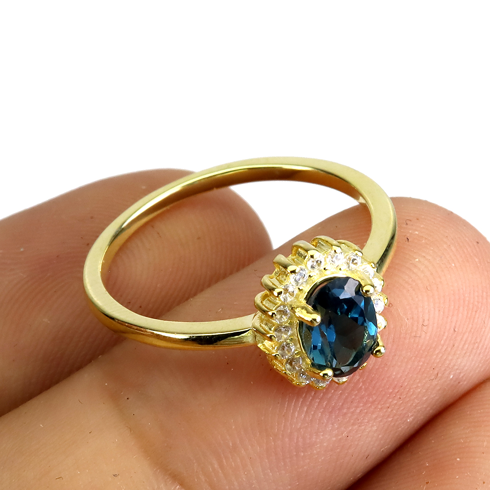 Irradiated Oval London Blue Topaz 7x5mm Simulated Cz 925 Sterling Silver Ring 7