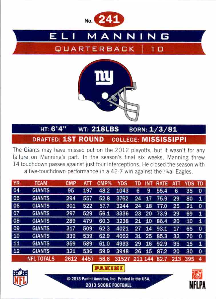 | 2013 Panini Score 241 Eli Manning |