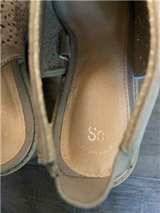 SO Kohl's Girls /Women's Tan Open Toe Stacked Heel Shoes