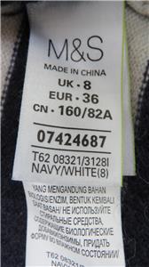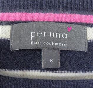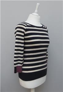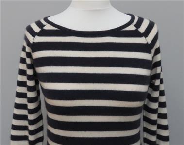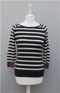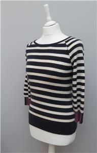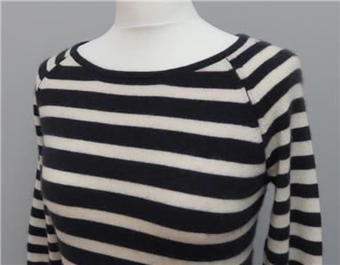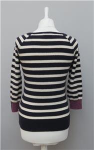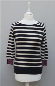 M & S Per Una 100% Cashmere Navy & White Striped 3/4 Sleeve Round Neck Jumper 8