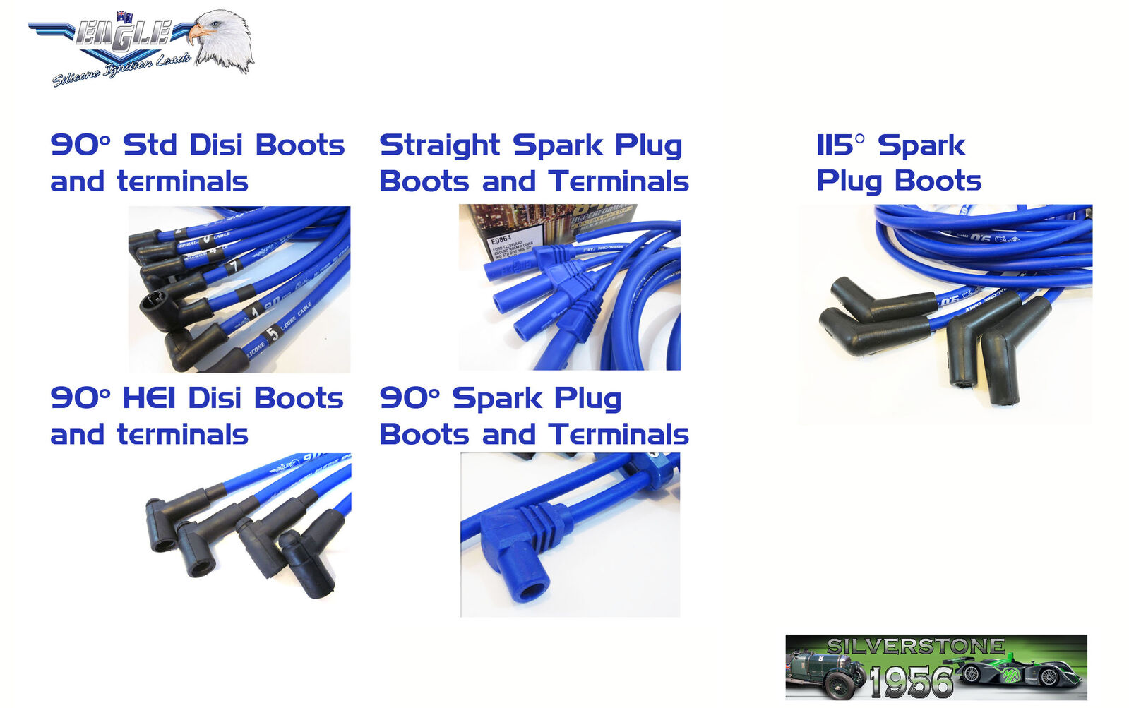 Although we try to keep all of the popular combinations of Eagle ignition leads on the shelf, it is impossible to keep them all on the shelf especially when you take into account that Eagle make their sets in 5.0mm, 7.0mm, 8.0mm, 9.0mm, 10.5mm and 11.0mm silicone coated cable in 3 different colours. Then some engines different length sets that reach under exhaust manifold, over the valve cover and around the valve cover sets. On top of that we need to account for different spark plug boots and standard ignition distributor boots (female cap posts), HEI (male disi cap posts) and MSD boots.