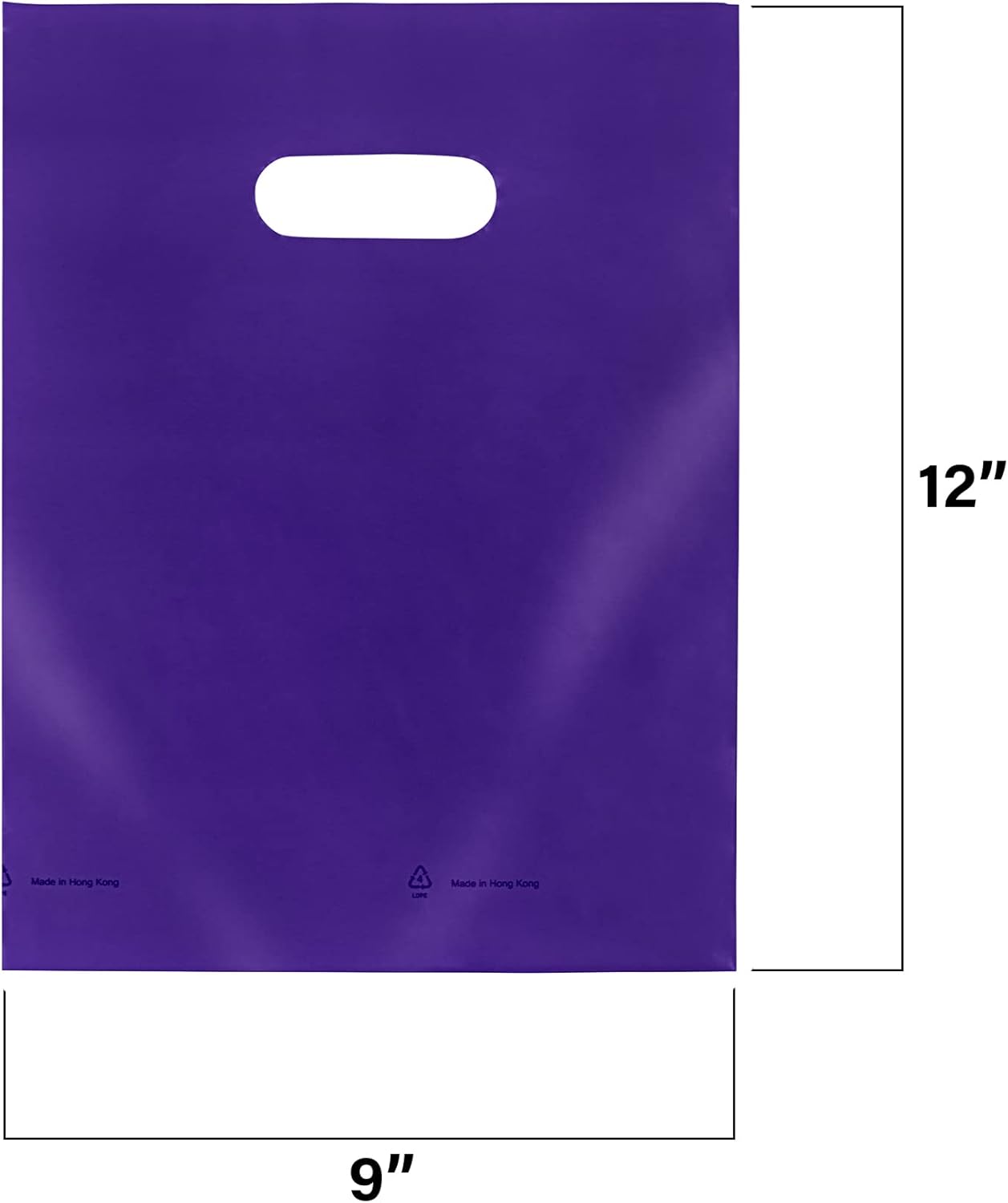 MT Products 9" x 12" Purple 1.25 Mil Thickness Plastic Merchandise Bags - Pack of 25 are the perfect plastic bags with handles bulk to hand out your products to potential clients or send home a souvenir with guests. Made of quality material and the 1.25 mil thickness promises strength and resilience. These favor bags or retail bags for small business with its durable die cut handles make it convenient to carry different kinds of small to medium sized items. The beautiful glossy finish design makes these small gift plastic bags elegant enough for a wedding. Whatever the needs and events we have a variety of colored bags to match any occasions. fill up our bags with party favors and watch the smiles on those little kids faces.
