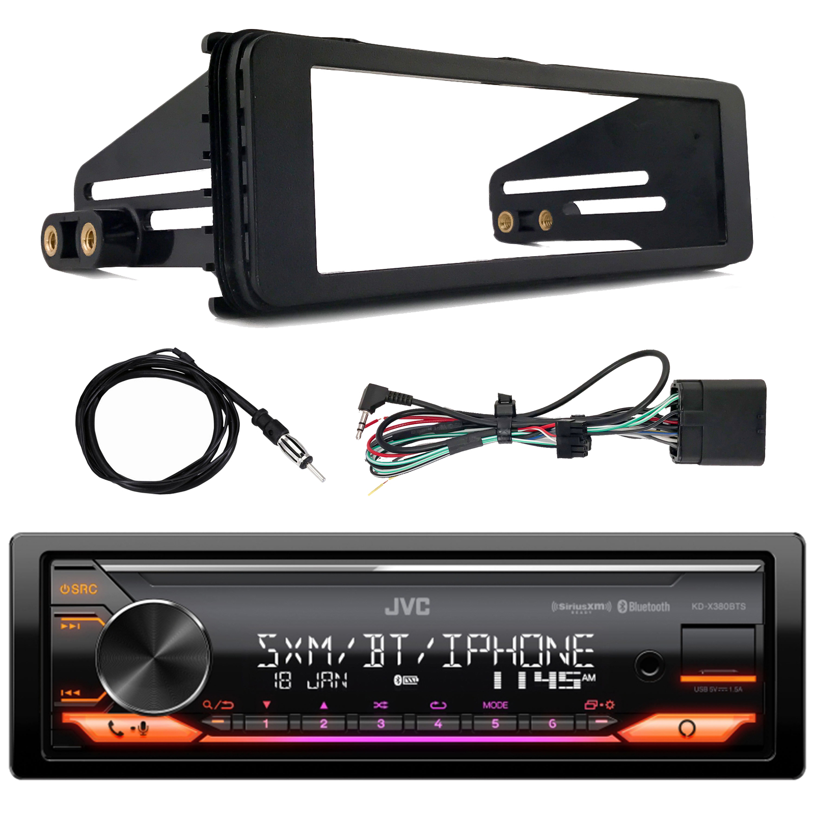 JVC KD-X380BTS Single DIN Bluetooth USB AUX AM/FM Radio Stereo LED Illumination SiriusXM Ready Amazon Alexa Car Audio Receiver, Enrock Harley Davidson Single-DIN Stereo Installation Kit Fits, Antenna