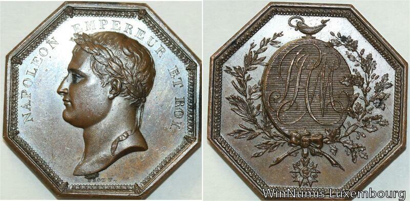 Rare Medaille Napoleon I Octogonal Piefort Ordre Droz Baron Desnoyers SPL