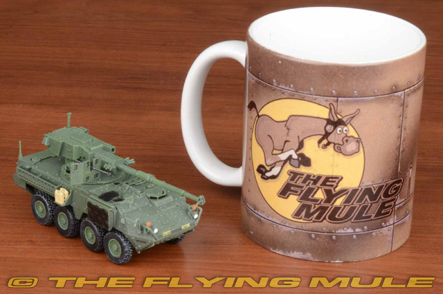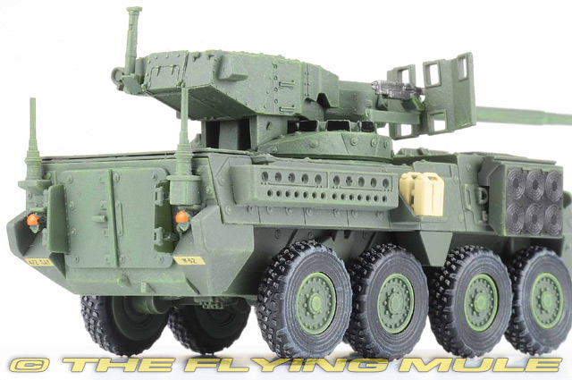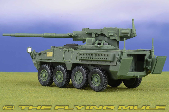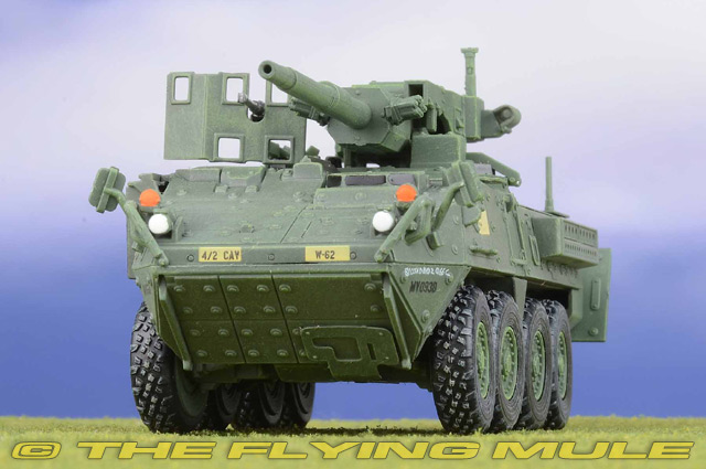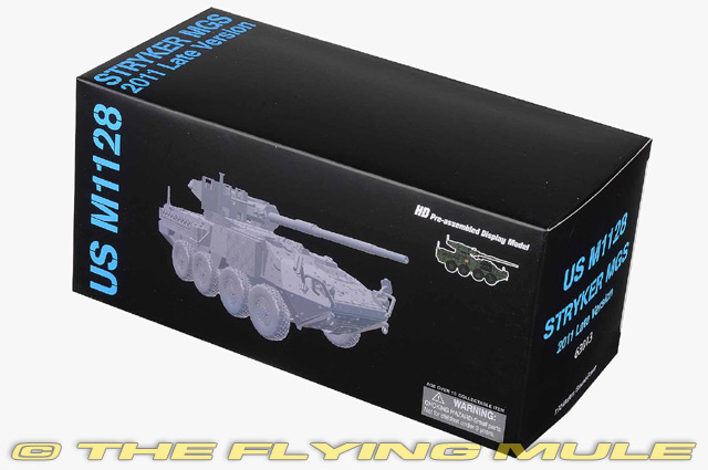 The 2nd Cavalry Regiment, also known as the 2nd Dragoons, is an active Stryker infantry and cavalry regiment of the United States Army based at the Rose Barracks in Vilseck, Germany. Its mission is to provide the 7th Army Training Command with a lethal and agile force capable of rapid deployment throughout the European theater in order to assure allies, deter adversaries, and when ordered, defend the NATO alliance. The M1128 Mobile Gun System (MGS) is an eight-wheeled armored car of the Stryker armored fighting vehicle family, mounting a 105 mm tank gun. The MGS's low profile turret has a small silhouette, is stabilized and mounts a 105mm M68A1E4 rifled cannon with a muzzle brake and an autoloader. The vehicle is primarily outfitted to support infantry combat operations; while it could take on some of the roles of a tank, it is not designed to engage in combat with tanks. The MGS can store 18 rounds of main gun ammunition, 8 in the autoloader's carousel and an additional 10 in a replenisher located at the rear of the vehicle. It has a rate of fire of ten rounds per minute. M1128 Stryker MGSDesigned as a heavy armored tank destroyer based on the Styker platform, the M1128 Mobile Gun System entered service with the US Army in 2002.© Copyright 2003-2026 The Flying Mule, Inc. Dragon Models 1:72 Armor Collector SeriesThe Dragon Models "1:72 Dragon Armor Collector Series" range presents highly-detailed, ready-made plastic models of military vehicles. Dragon Armor tanks require no glueing or painting. Each model is an instant display piece or diorama centerpiece straight from the box and is 100% true to scale... these don't look like model tanks, they look like tanks!. Color, camouflage and unit markings are carefully researched for Maximum authenticity, marking the difference between and authentic scale model tank and a "toy" tank.Dragon Models "1:72 Dragon Armor Collector Series" display model vehicles feature: