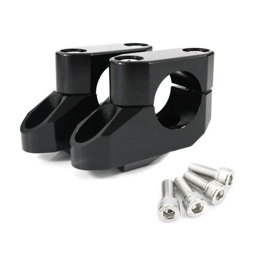 Offset Handlebar riser and offset kit to suit standard (1 1/8", 28mm) bars mounts, made from 6063-T6 Billet Aluminum. Provides 25.8 mm higher, 20 mm back and forth positions from stock handlebar position. Great to use for tall riders with 20 mm forward position. Aftermarket Fits for the motorcycles, Dirt bikes and ATVs which have 28mm 1 1/8" handle bar. We provide black color to you. The Package Included 1 Pair of Offset handlebar risers with bolts.