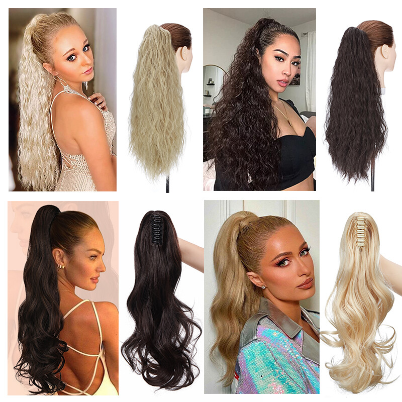Long Ponytail Hairpiece Real Smooth Thick Straight Wavy Claw Pony Tail Extension