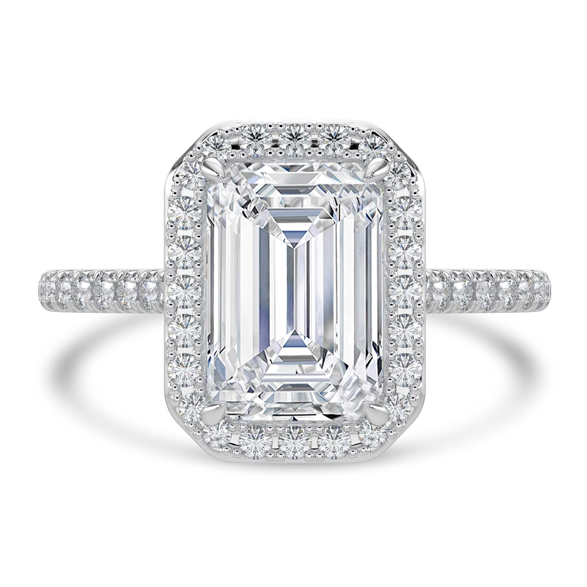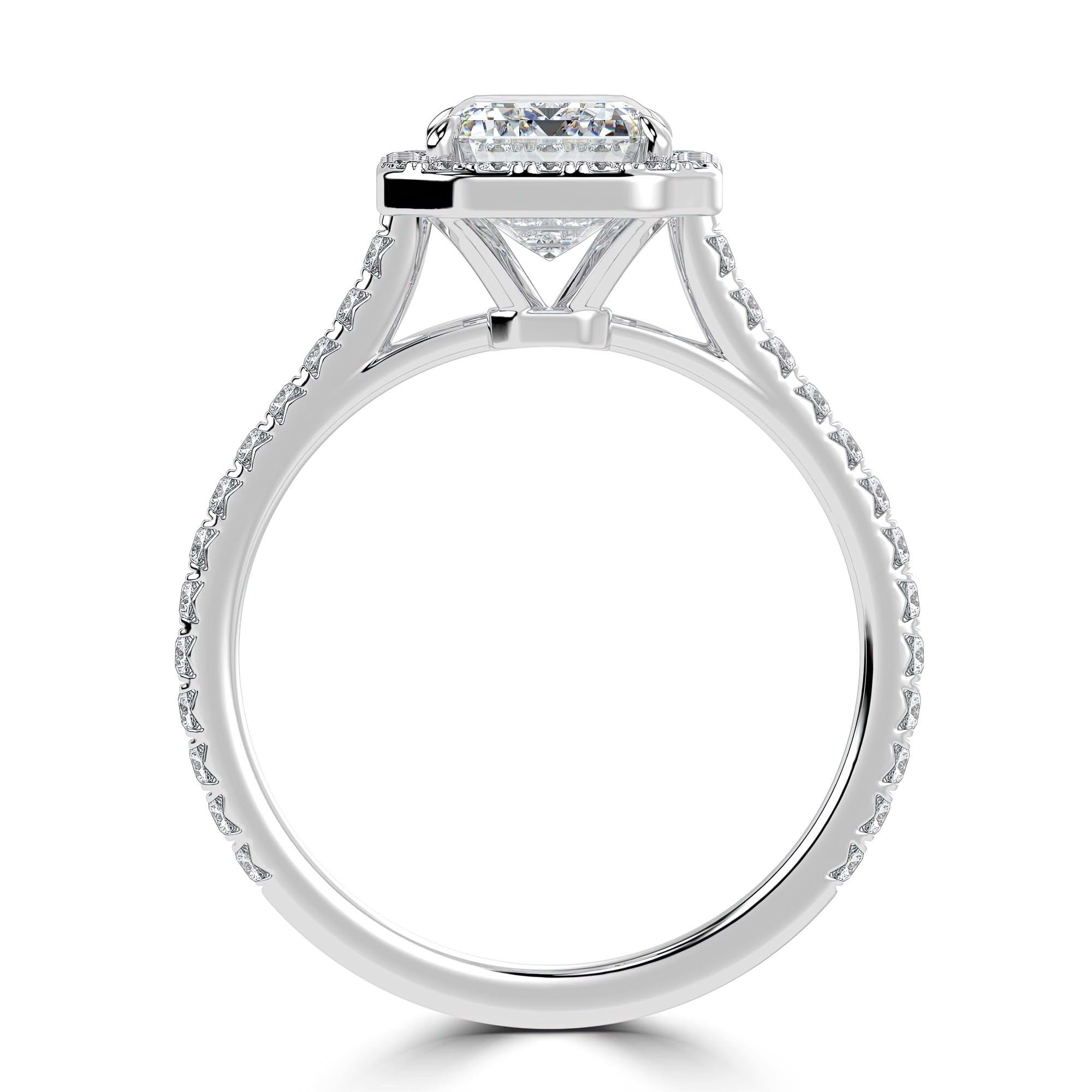 This 4-Prong Radiant Halo Engagement Ring dazzles radiantly beneath the lights. It's a jaw-dropping way to showcase your chic. It's a graceful statement with a hint of glamour and glitz.