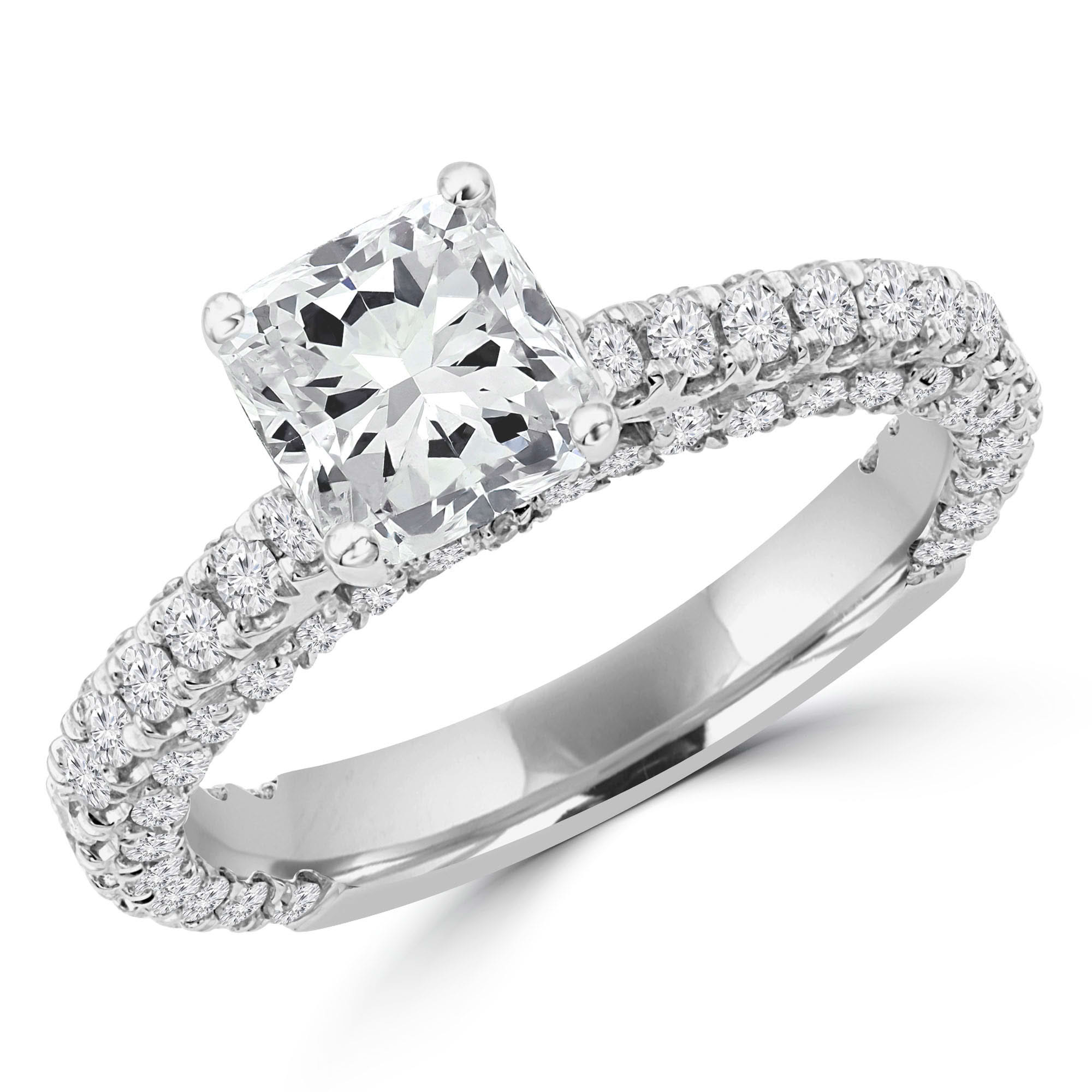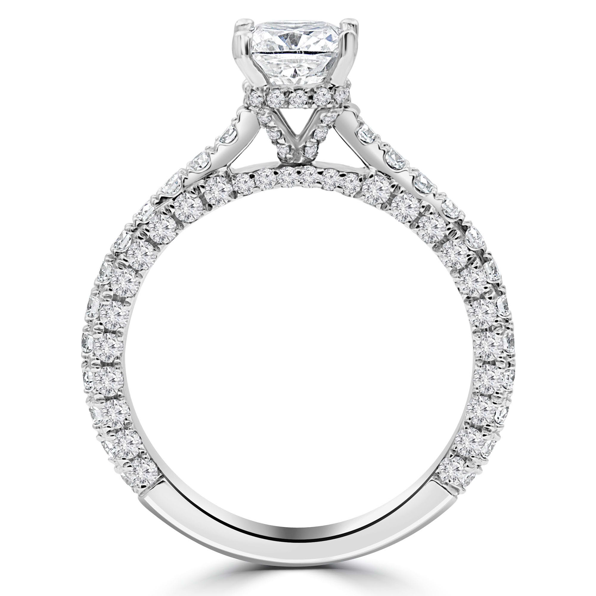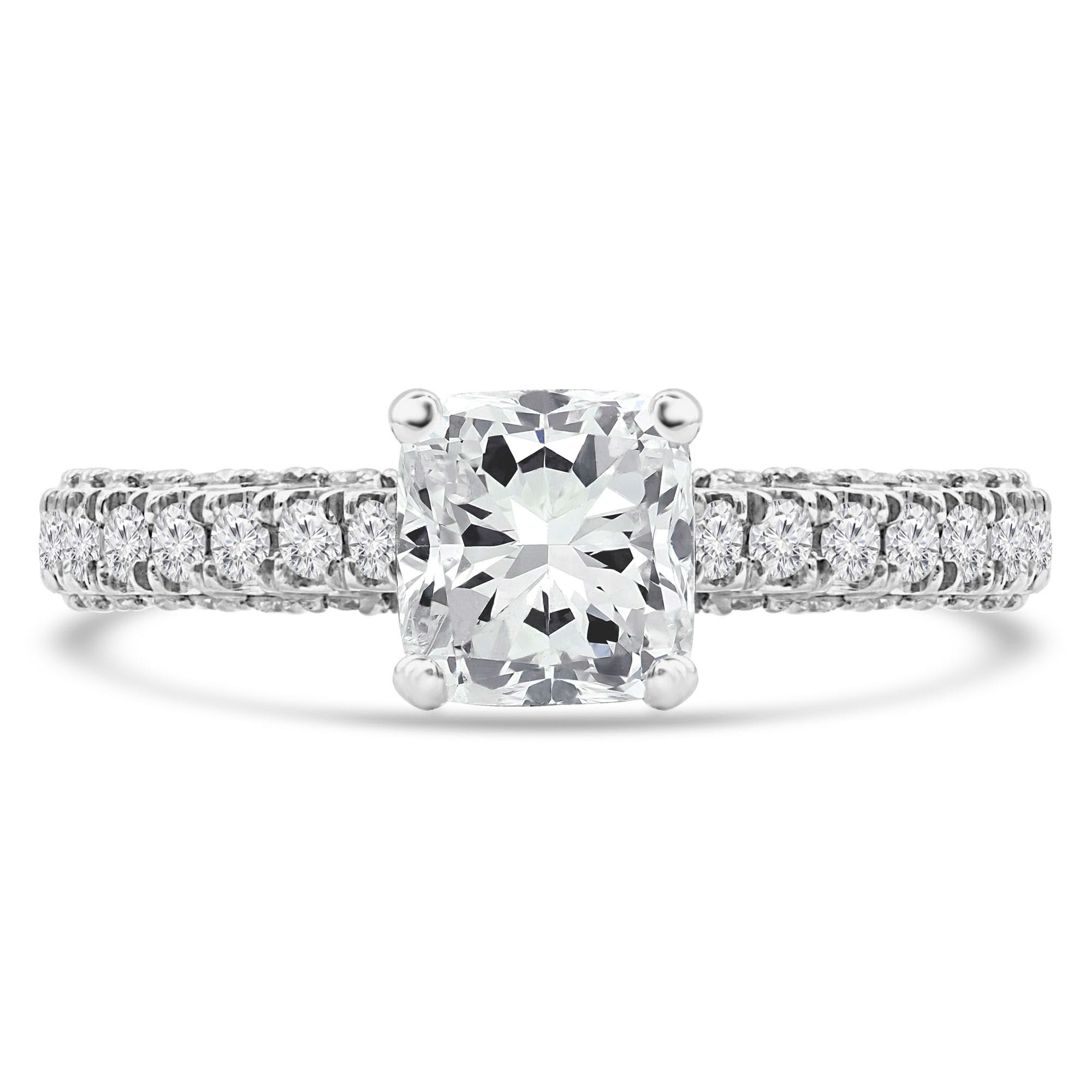 1.97 CT Cushion VS1 F Diamond Pave Engagement Ring 14K White Gold