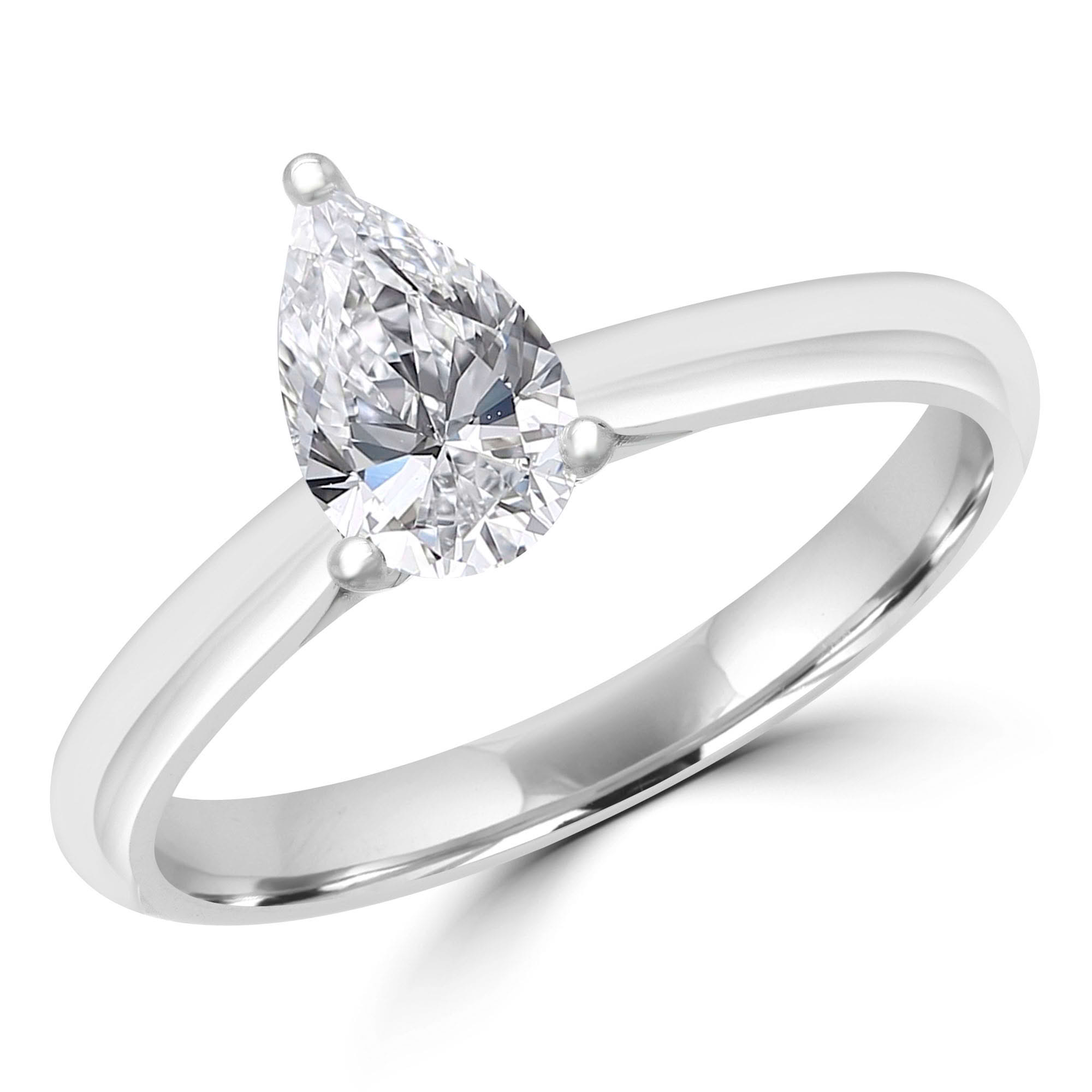 0.7 CT Pear SI2 G Diamond Pave Engagement Ring 14K White Gold