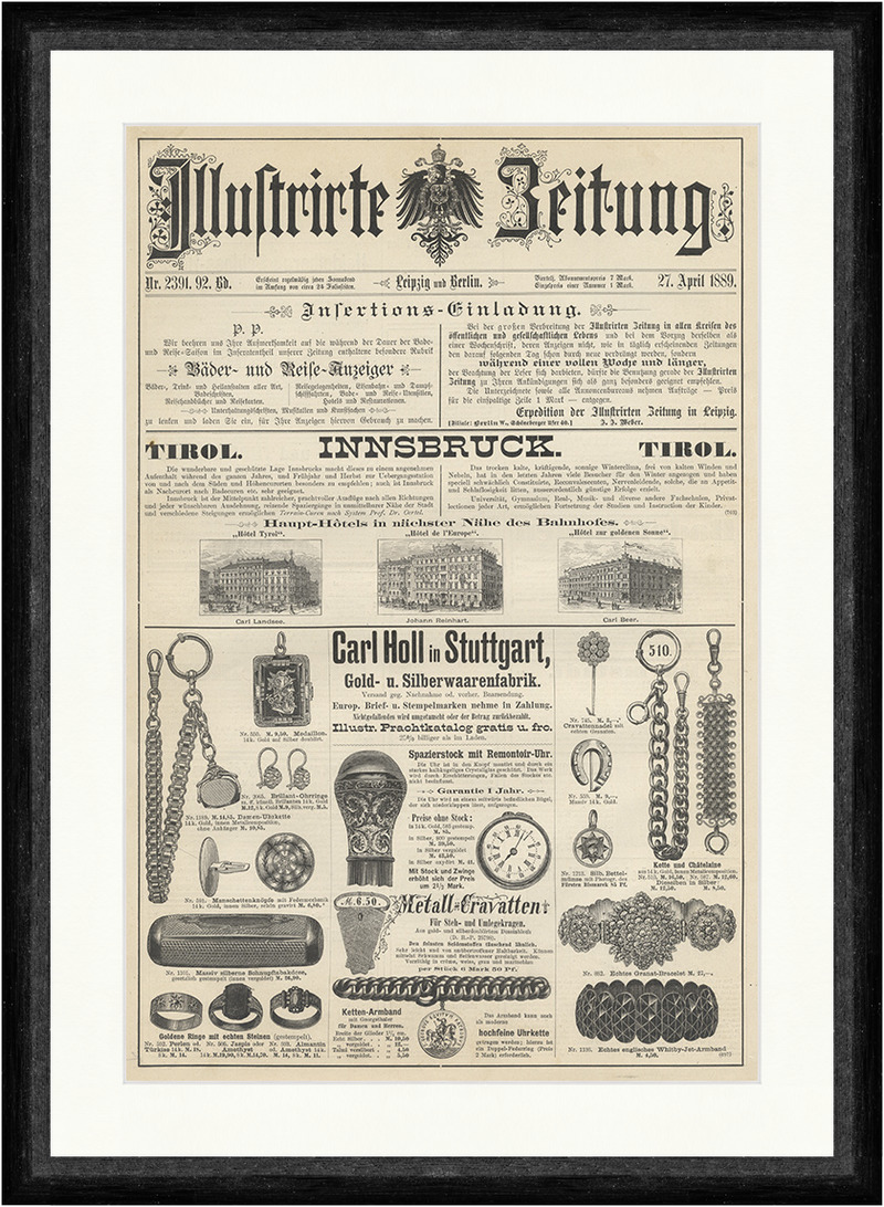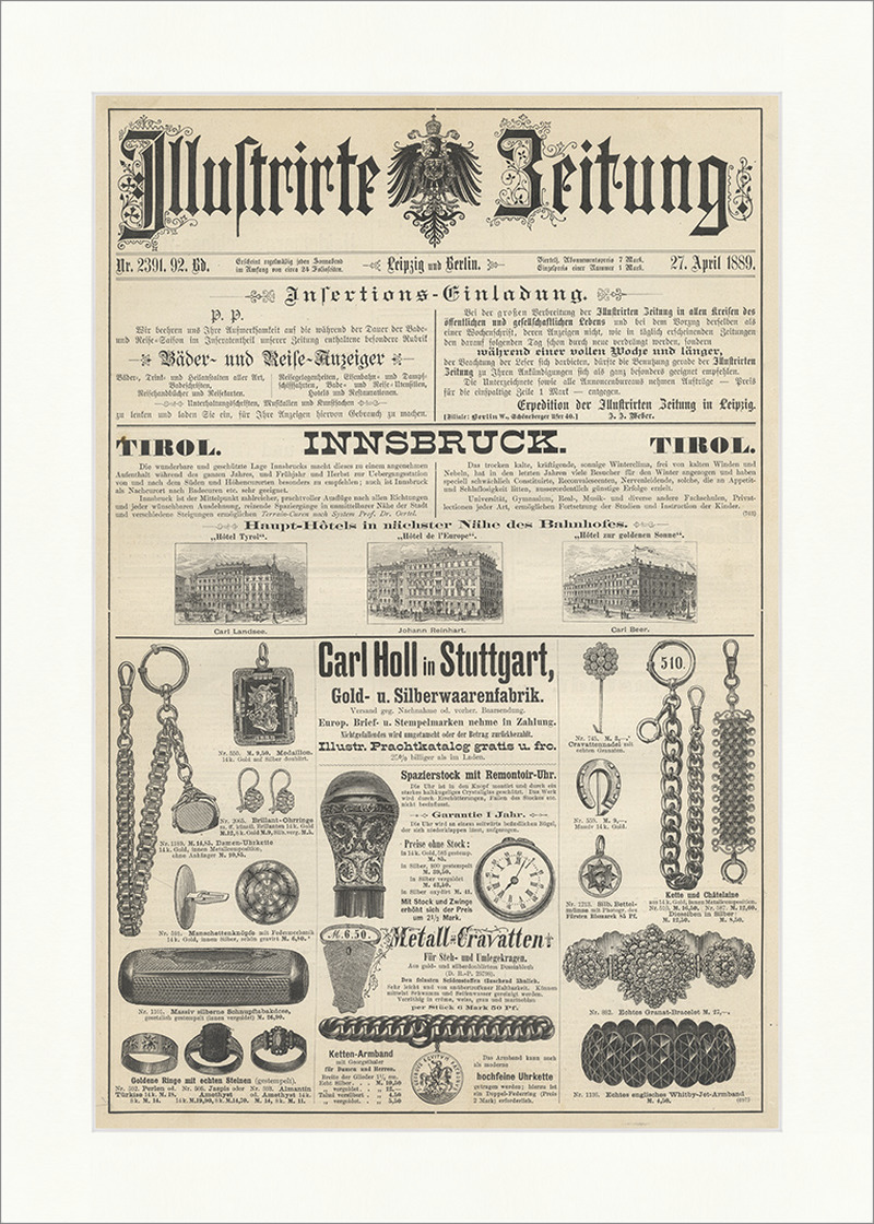 aus dem Jahr 1889 Dieses Zeitzeugnis ist eine Titelseite der schönsten Publikation aus der Zeit zwischen 1850 und 1900. Diese komplette Titelseite ist überall der Hingucker an.
