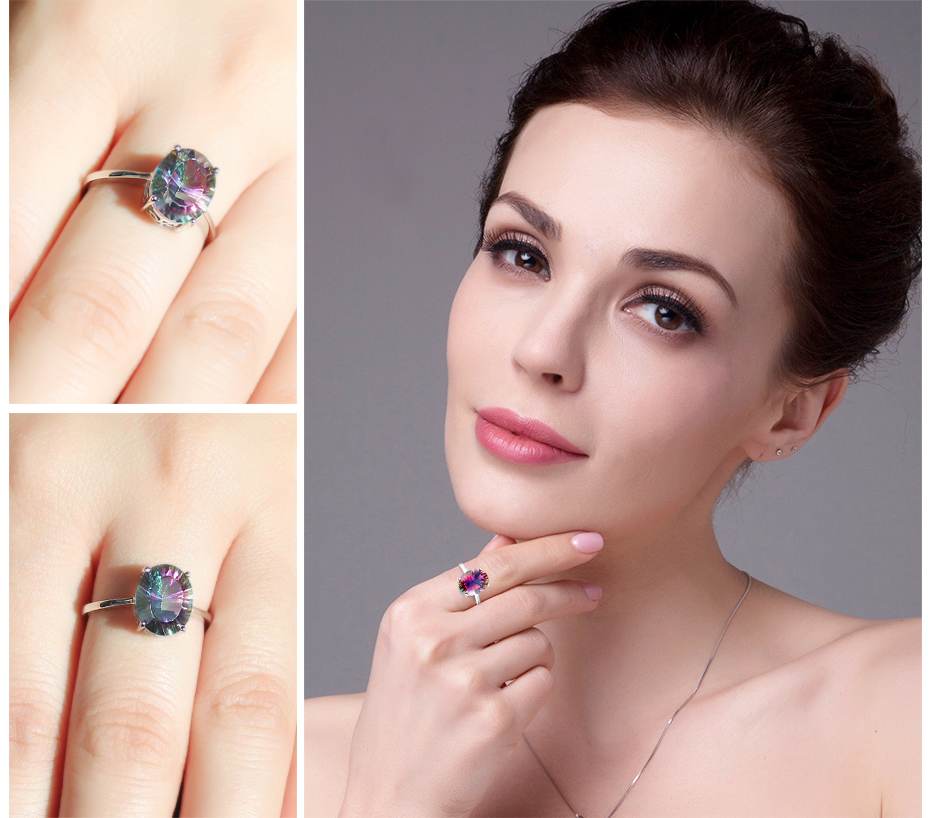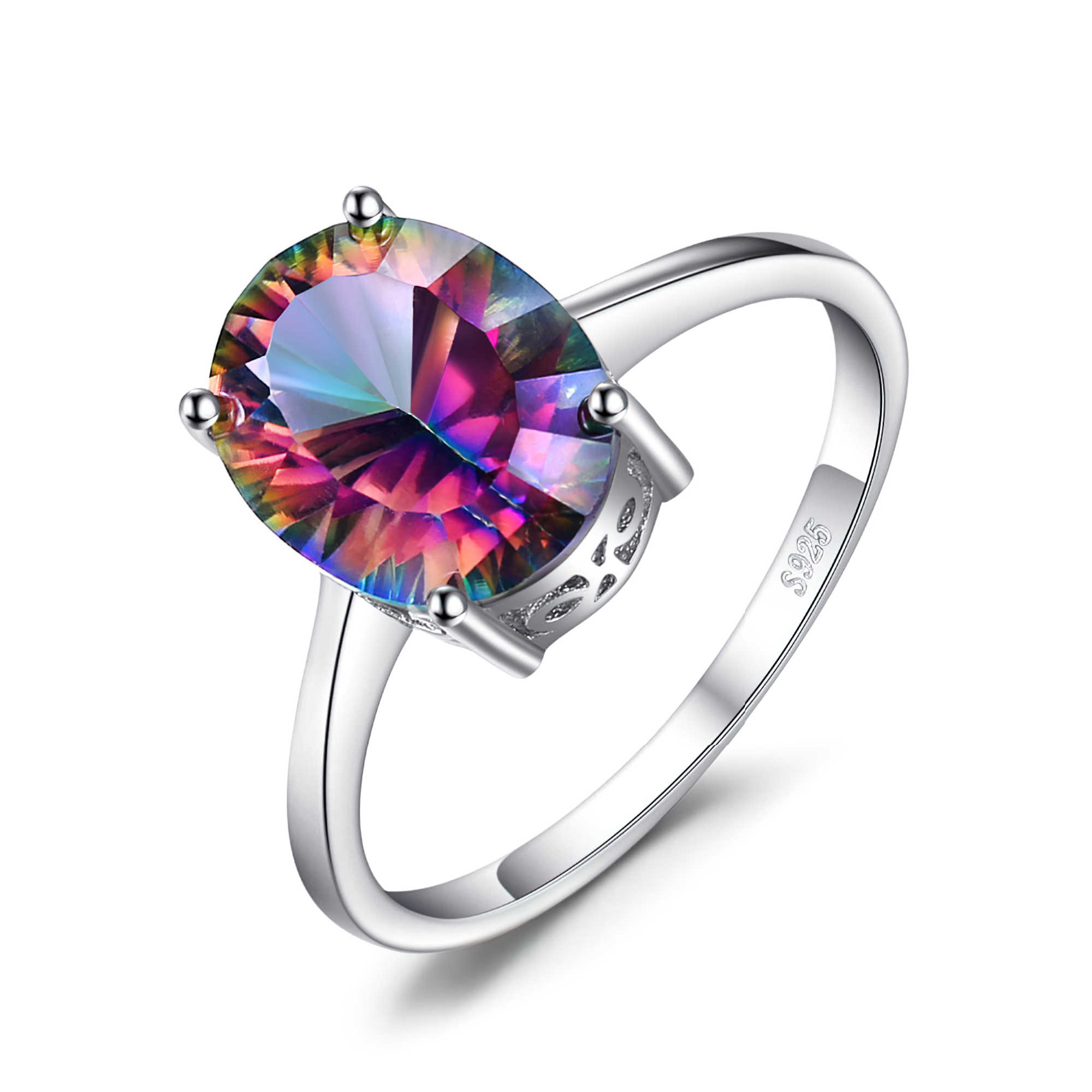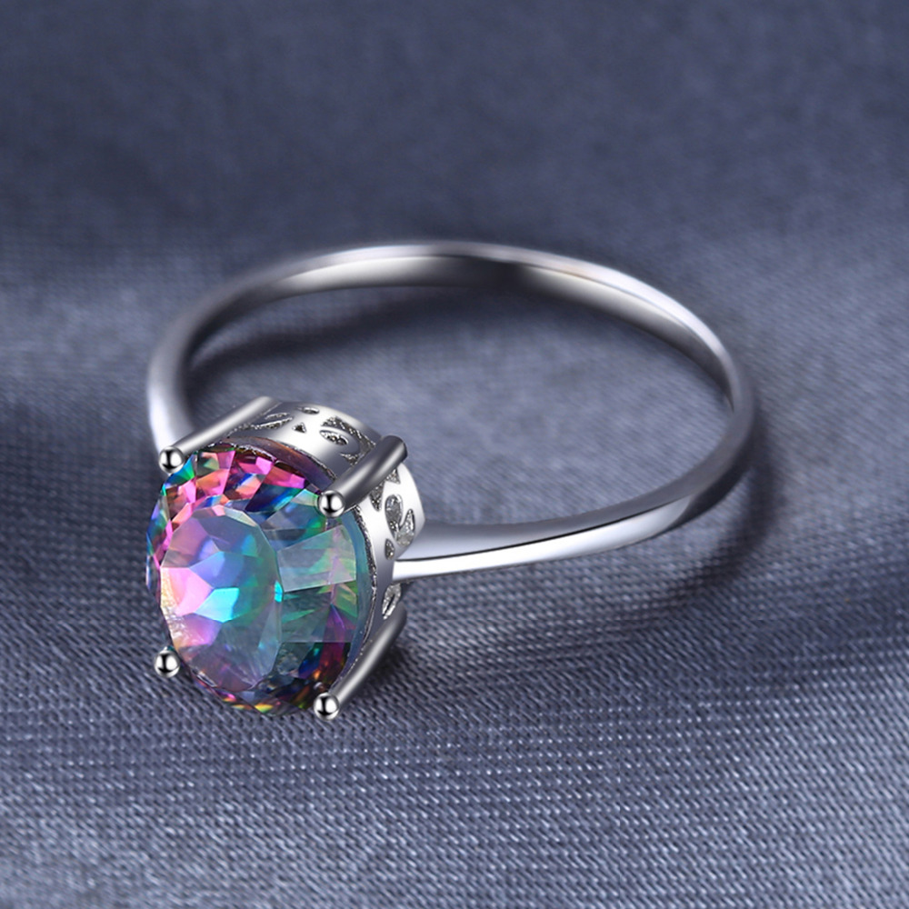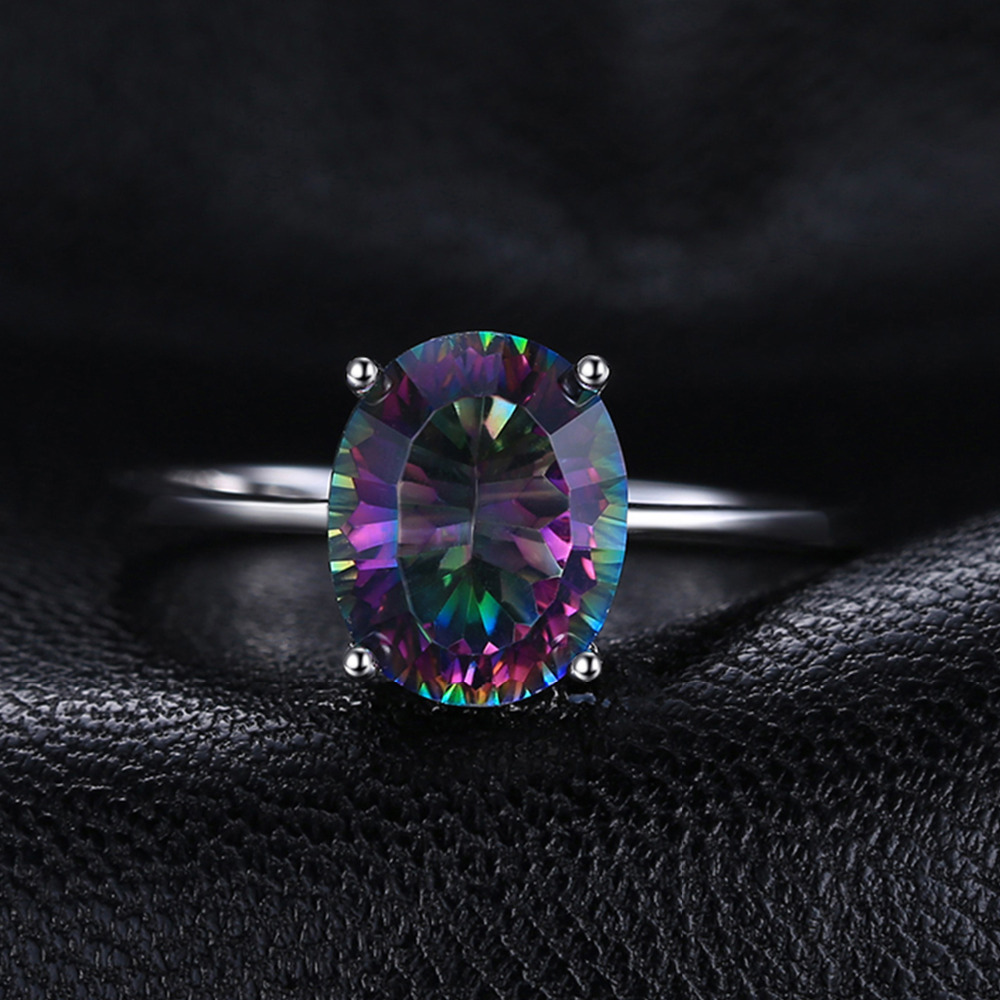 2.5 CT Oval Mystic Topaz Solitaire Ring 0.925 White Sterling Silver