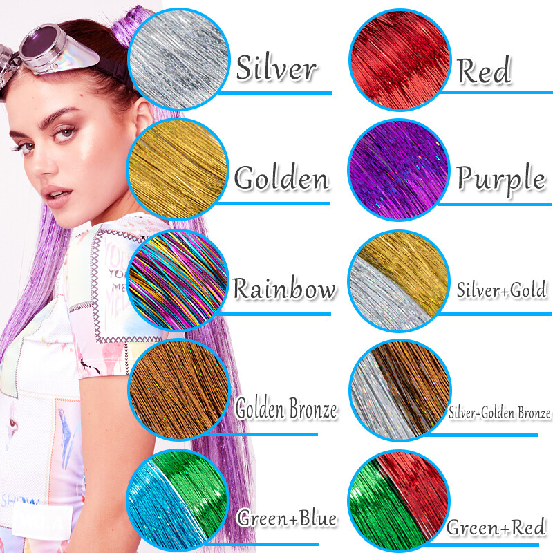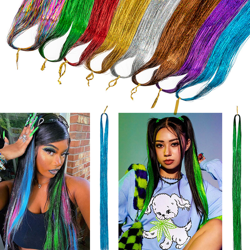 Application: make you cool and fashionable, sparkling and shiny strands hair extension tinsel is good for daily hair beauty, birthday party, theme party, stand out with your beauty, make you outstanding in the crowd.
