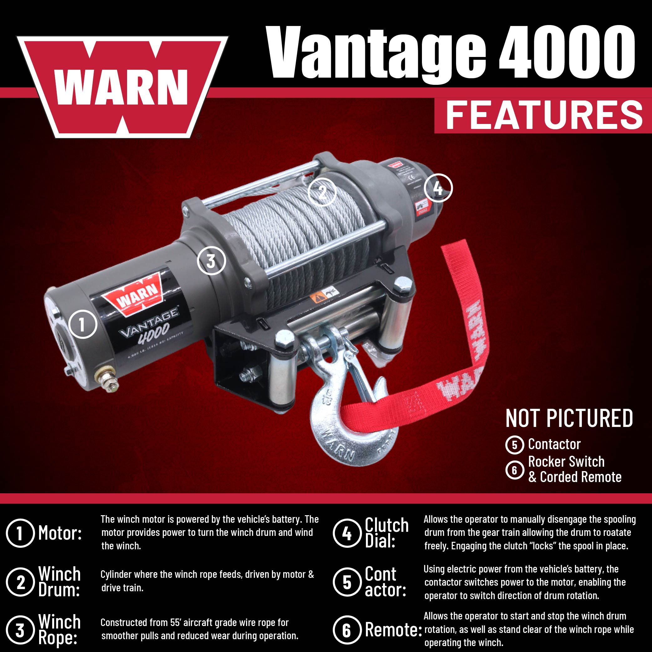 WARN VANTAGE 4000 12 Volt DC Powered Electric ATV Winch 4000-Lb.SKU: 108214