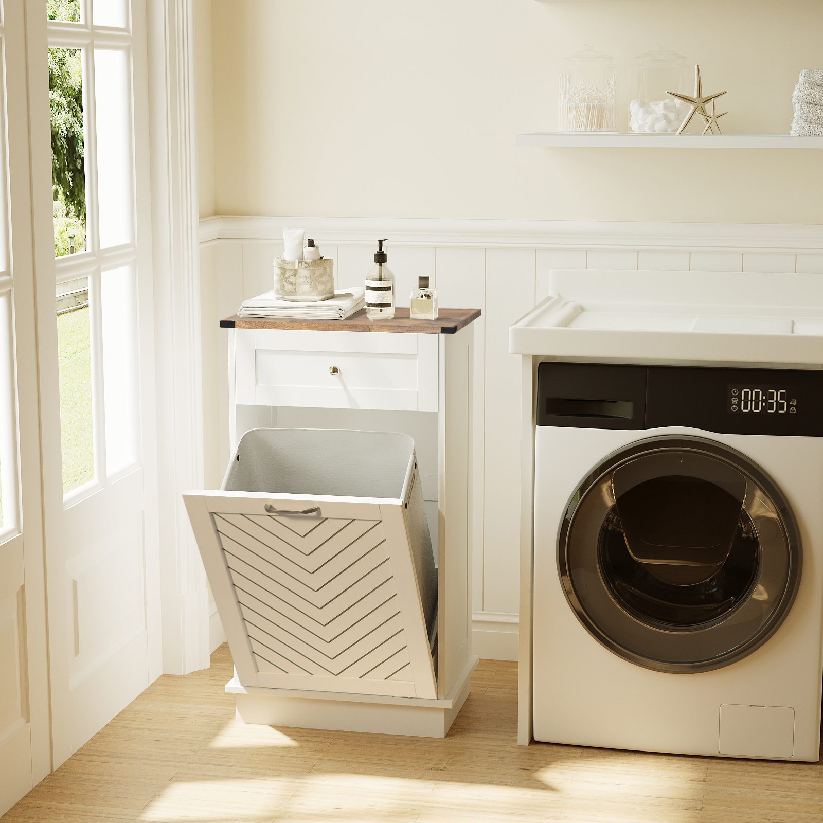 【One Big Storage Drawer】 -- The pull out storage drawer provide hidden storage space for trash bags, scissors and pet food. Includes a movable bamboo cutting board fits nicely onto the drawers top, providing additional cutting space that brought straight to the table.