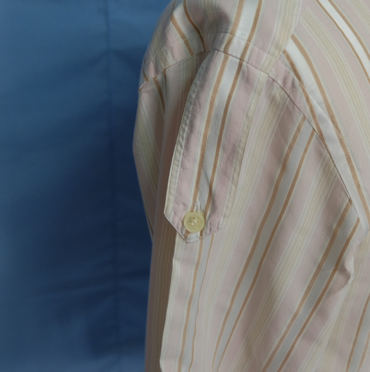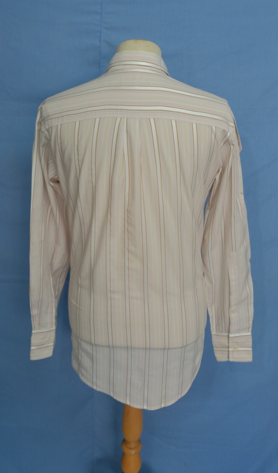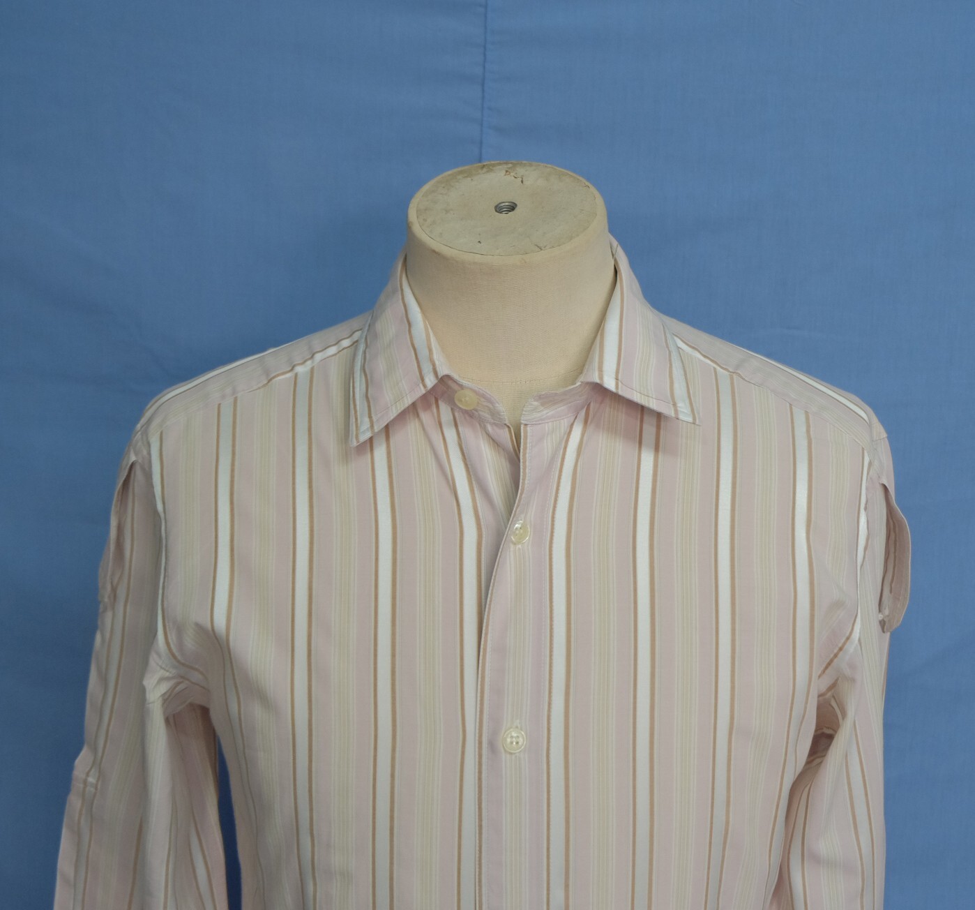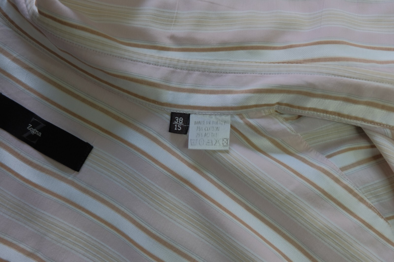 Excellent Z Zegna Shoulder Strap multicolor striped men's shirt long sleeve with buttons front authenticity guaranteed. The shirt is pre-owned still in excellent condition, no holes, tears, stains. It has been laundered clean and fresh ready to wear. The shirt has point collar with single chest pocket on left, 7 buttons closure on front. The color is multicolor with striped pattern. Fabric is 75% cotton, 25% acetate. Don't miss out cool and awesome shirt.