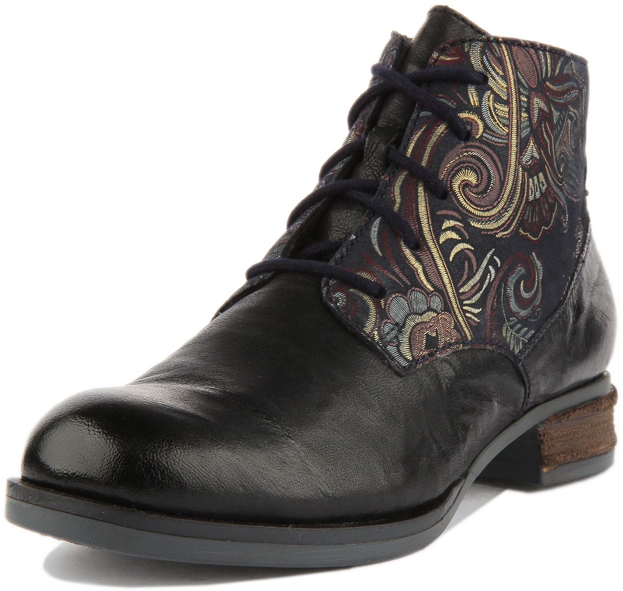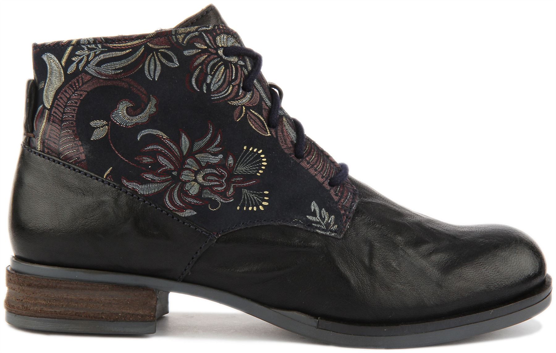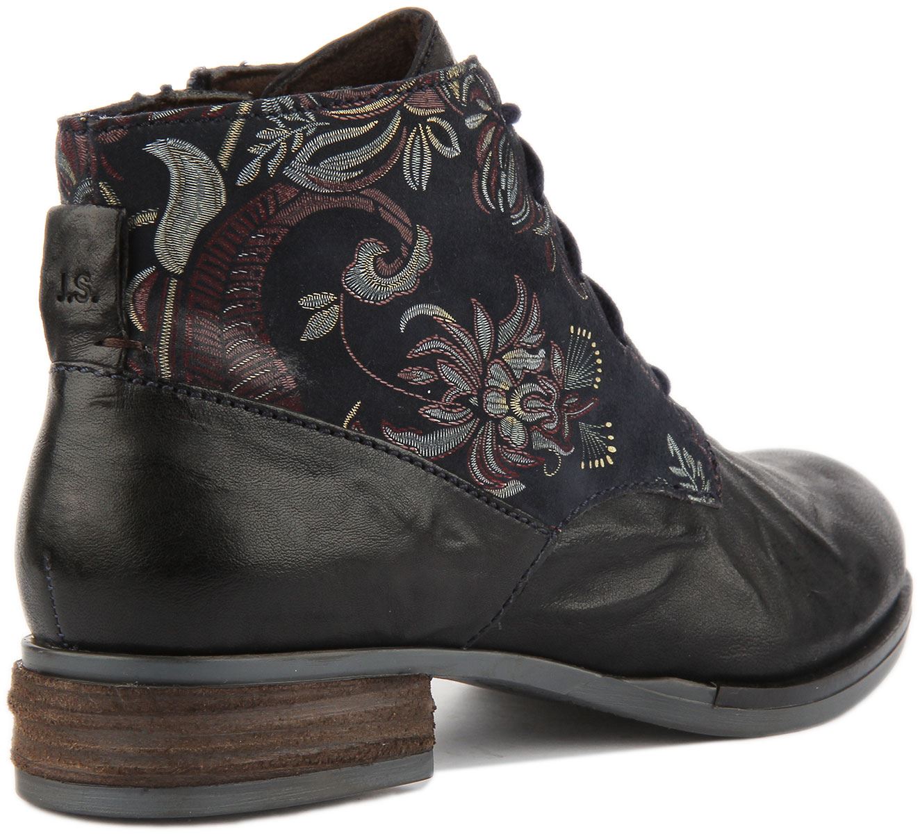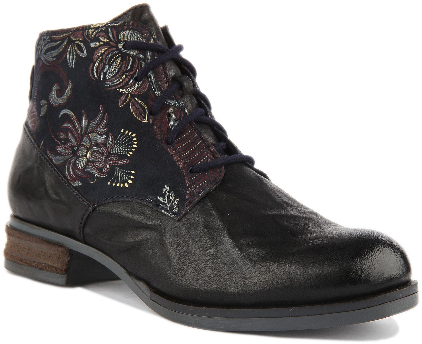 Josef Seibel Sanja 10 Women's Lace Up Leather Ankle Boots With Floral Side In Navy