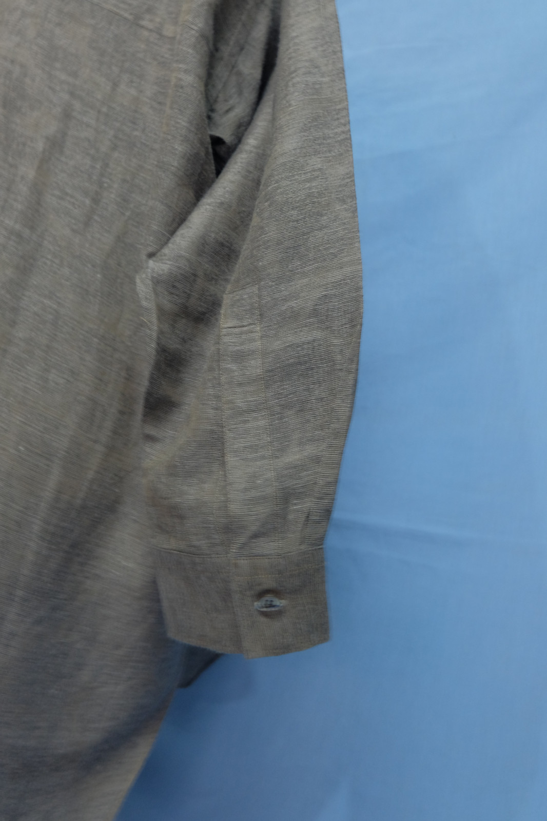 Excellent Yohji Yamamoto Y's for men Flower Print solid dark beige men's shirt long sleeves with buttons front authenticity guaranteed. The shirt is pre-owned still in excellent condition, there are no holes, tears, stains. It has been laundered clean and fresh ready to wear. The shirt has point collar, double chest pocket with middle button and flap, 7 mother of pearl buttons closure on front. The color is dark beige with thin flower print on shirt. Fabric is 50% cupro, 35% cotton, 15% linen. Don't miss out cool and awesome shirt.