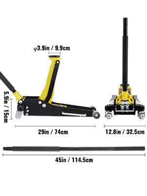 VEVOR low profile floor jack easily slides underneath the vehicle and lifts your vehicle off the ground in no time. It makes your vehicle repair work feel like a walk in the park. Our jack is more than capable of lifting most vehicles. It is perfectly constructed of durable aluminum and high-strength steel to tackle any tough challenge. The floor jack can be used for general or heavy-duty industrial use. Dual pump pistons quickly raise the floor jack saddle to load. The rubber saddle pad and foam bumper pad protect your beloved vehicles. Steel casters and side-mounted handles for easy transportation and positioning. Get ready to experience a powerful, secure, and reliable jack. Prepare to lift like never before!