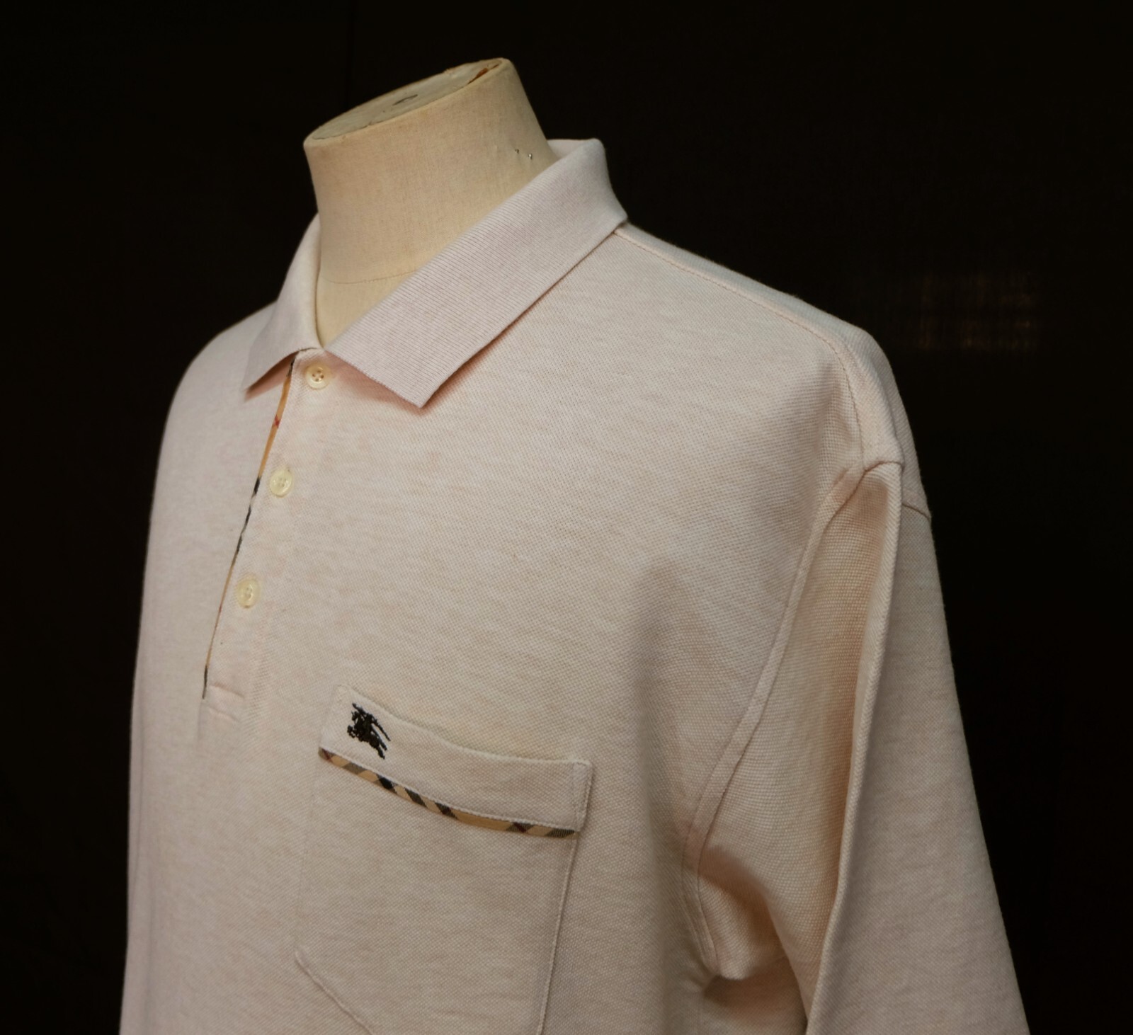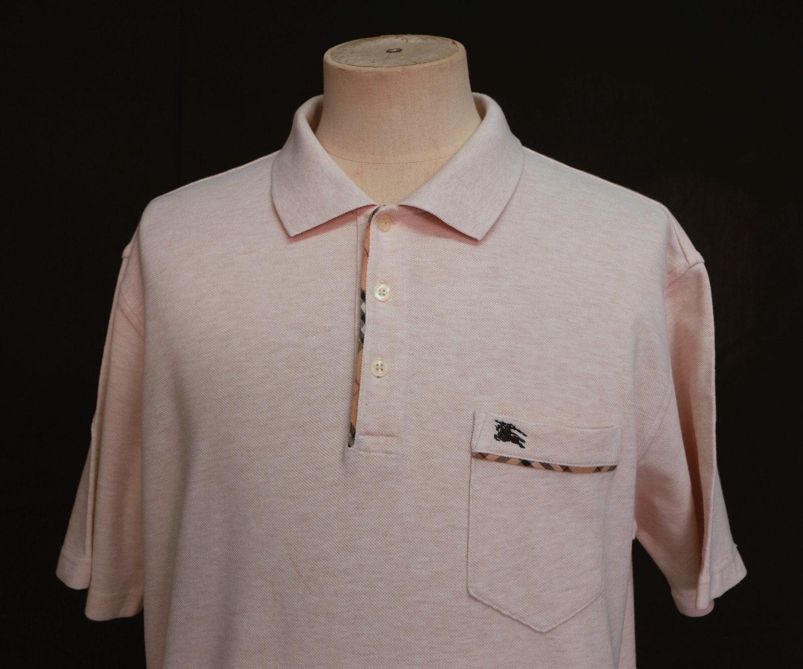 Awesome Burberry London solid nude pink men's polo shirt short sleeves with button front authenticity guaranteed. The shirt is pre-owned still in very good condition, there are some tiny dots on the shirt. Please see the photo. It has been laundered clean and fresh ready to wear. The shirt has polo collar with , single chest pocket embriodered with logo on left, 3 buttons closure on front, The color is nude pink with solid pattern. Fabric is 100% cotton. Don't miss out cool and awesome polo shirt.