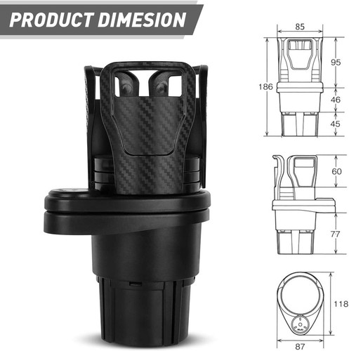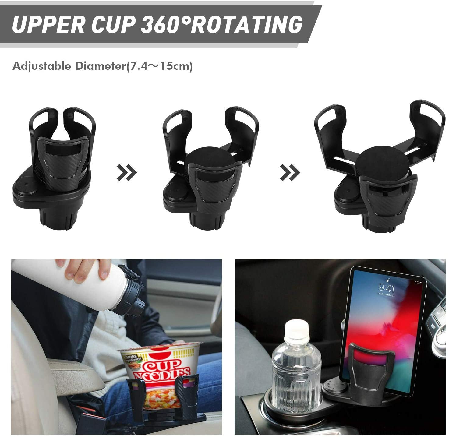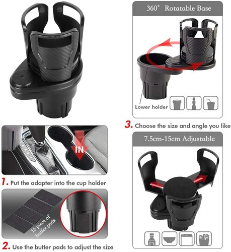 Car Double Cup Holder Expander Auto Drink Holder w/360° Rotating Adjustable Base