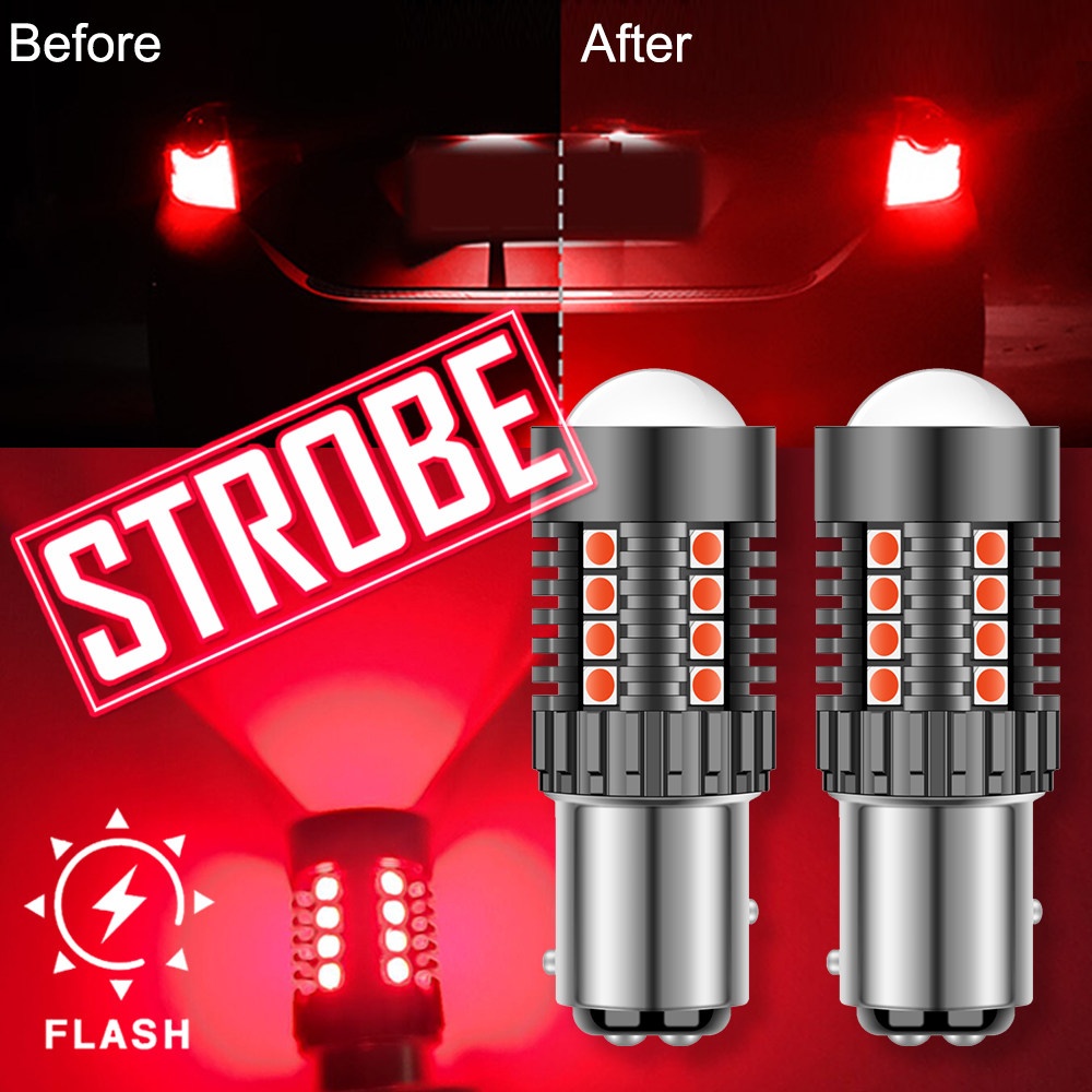2PCS LED Strobe Brake Stop Tail Lights 1157 7528 2057 BAY15D Red Super Bright