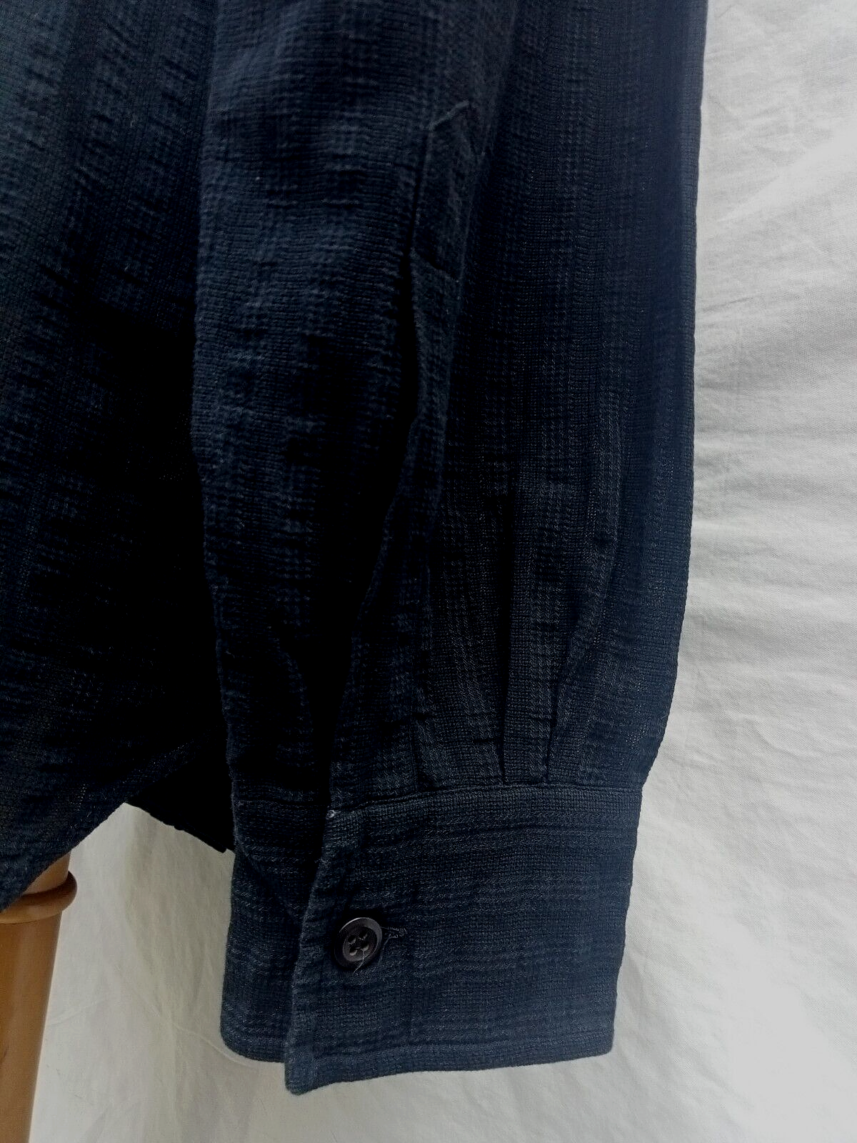 Luxury GIORGIO ARMANI LE COLLEZIONI black men's casual shirt long sleeve with buttons front authenticity guaranteed. Check out awesome designer shirt. The item has point collar with 7 buttons closure on front. The color is black solid pattern fabric is 100% cotton woven striped very soft. The item is pre-owned still in defect condition it's scratch on left shoulder please see photos. It has been laundered clean and fresh ready to wear. Don't miss out luxury designer shirt.