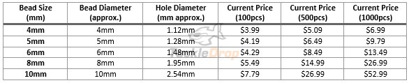 Current Sizes and Prices of Red Round Acrylic Beads: