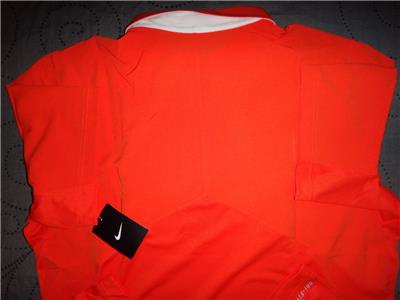 for sale is a NIKE FOOTBALL GOLF "DRI-FIT" POLO SHIRT, size XL Men new with tags $70.00 *STAY COOL* the color is #821 ORANGE with WHITE/DARK GRAY STRIPE and NIKE Swoosh logo on chest, DRI-FIT on HEM, Material: polyester and spandex exclusive of decoration, Measurements: size: XL chest=24.5"=49" around L: 31" size L chest: 23"=46" around L: 30" MORE OR LESS ** PLEASE ASK QUESTIONS FIRST BEFORE YOU BUY ANY ITEM IF YOU HAVE CONCERNS AND ALL THE RETURNS MUST HAVE THE TAGS ATTACH AND BE UNWORN ** I COMBINE SHIPPING and ship after payment clears