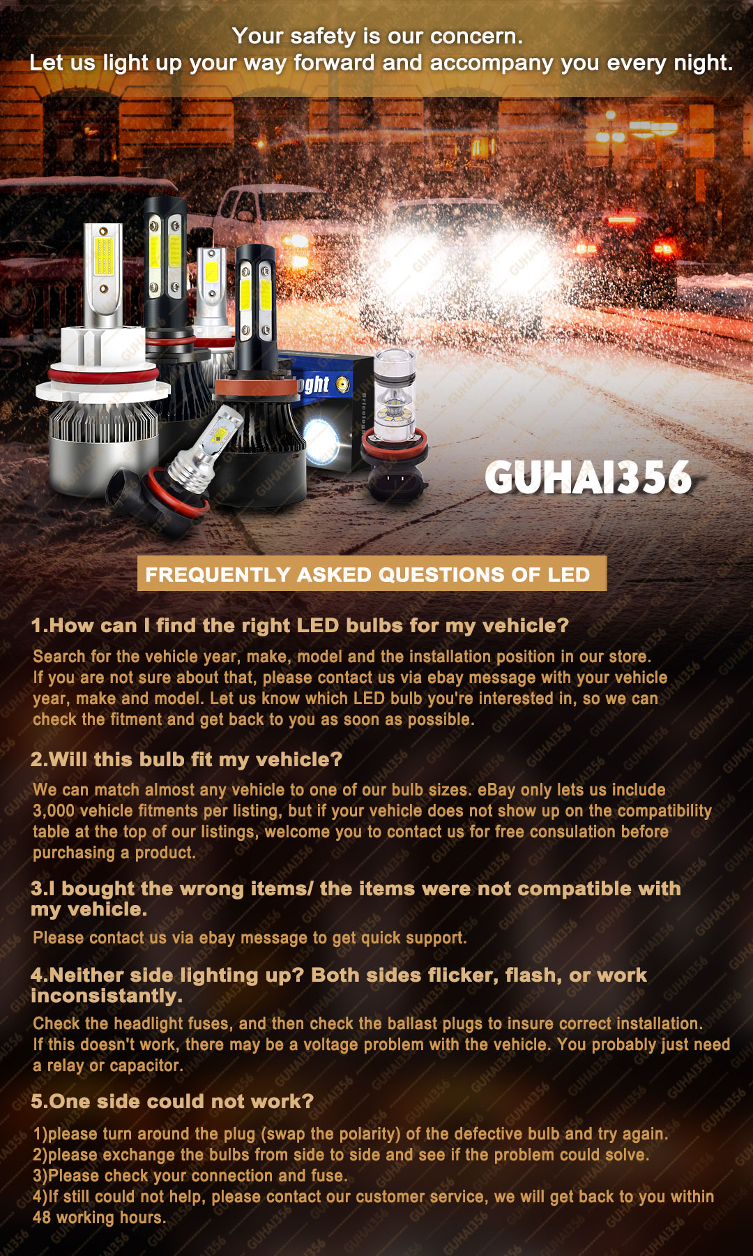 For Toyota Camry 2007-2014 H11 LED Headlight Bulbs Low beam + High Beam headlight bulbs