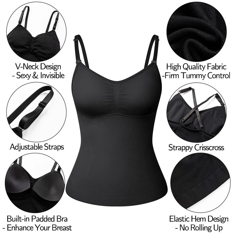 · ❤ ADJUSTABLE STRAPS ❤ -- This camisole shapewear features an adjustable strap to fit every body length and type and don't dig into your skin. It gives your chest an extra lift that you can wear it with or without a bra.