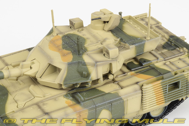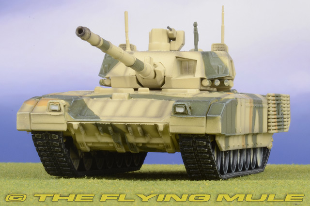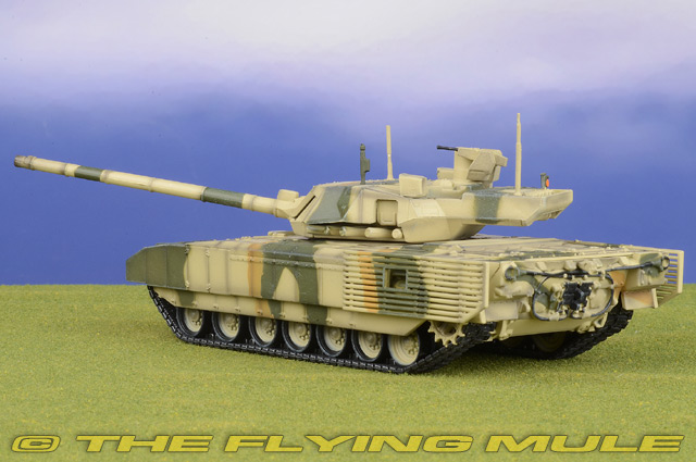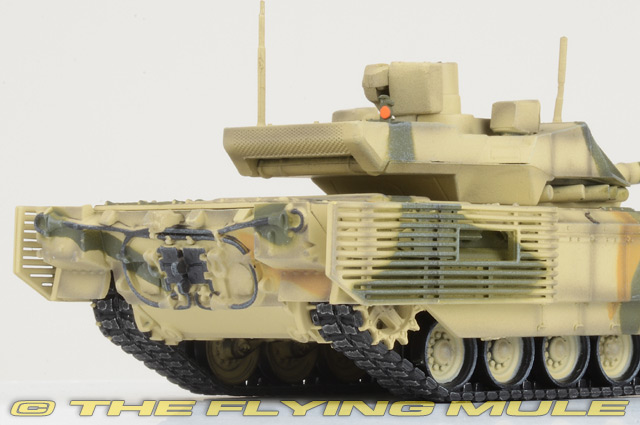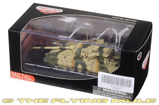 The T-14 Armata is a new Russian main battle tank based on the Armata Universal Combat Platform. It was first seen in public (initially with its turret and cannon shrouded) during rehearsals for the 2015 Moscow Victory Day Parade. The Russian army plans to acquire 2,300 T-14s in the period 2015-2020. Featuring a number of innovative characteristics, the T-14 represents a new generation of Russian main battle tanks. The most significant new feature is the use of an unmanned turret, with the crew of three seated in an armored capsule in the front of the hull. The development of the tank took five years and was initiated after the earlier, incrementally innovative T-95 (object 195) project was cancelled, after protracted development, with authorities citing excessive weight, complexity, and cost. UVZ T-14 ArmataDesigned as a next generation Main Battle Tank based on the Armata Universal Combat Platform, the T-14 was first unveiled to the public in Moscow at the 2015 Victory Day Parade.© Copyright 2003-2026 The Flying Mule, Inc. Panzerkampf 1:72 ArmorThe Panzerkampf "1:72 Armor" range presents affordable, ready made diecast models of military vehicles in 1:72 scale.Panzerkampf diecast vehicles feature: