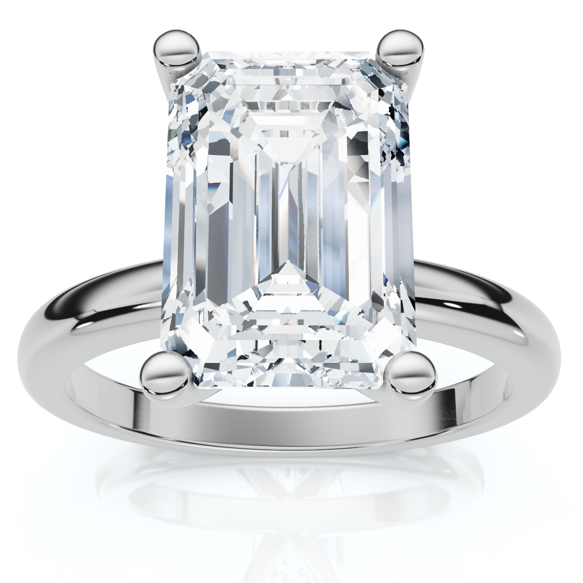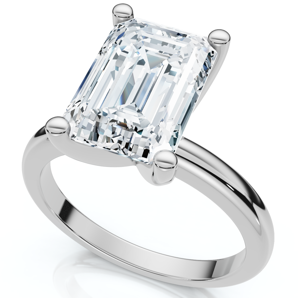 3Ct Emerald Solitaire Moissanite Engagement Ring in White Yellow or Rose Gold