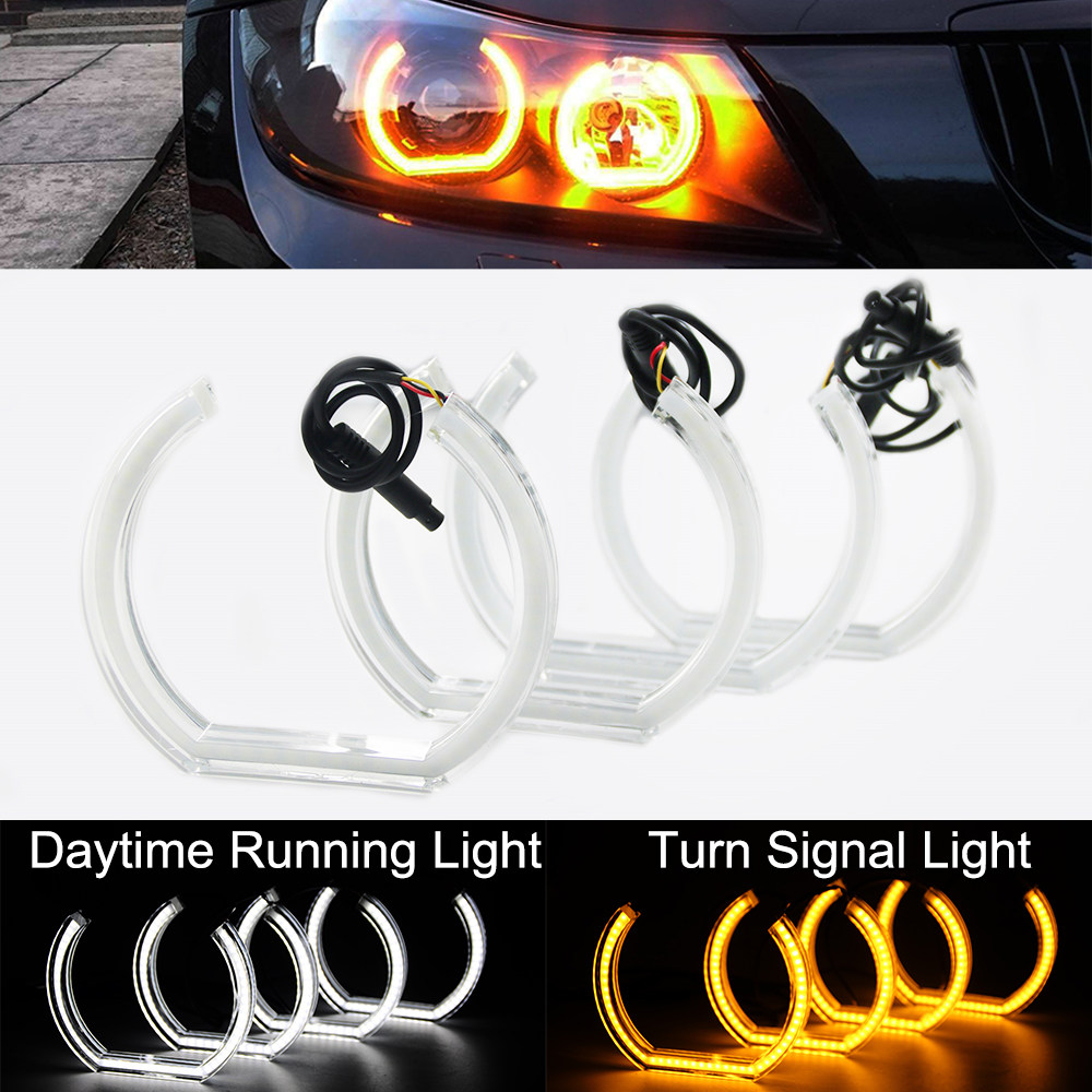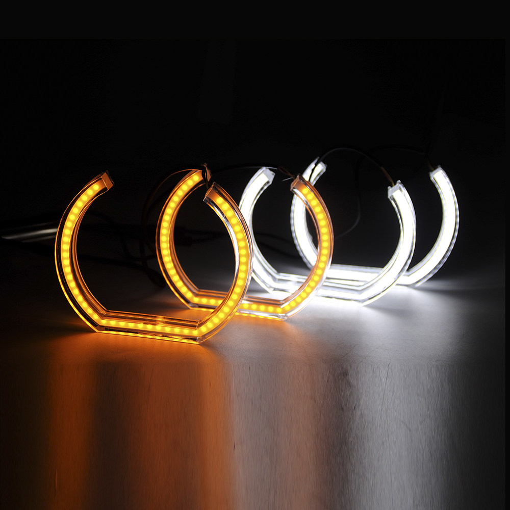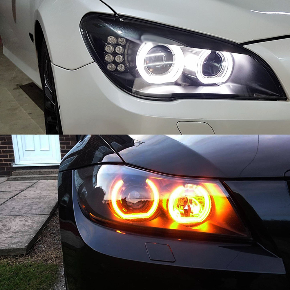 - It has two colors: xenon white and amber yellow with delay switchback feature. You can use the amber portion as turn signal lights or you can use it simply as either white or amber for BMW halo rings.