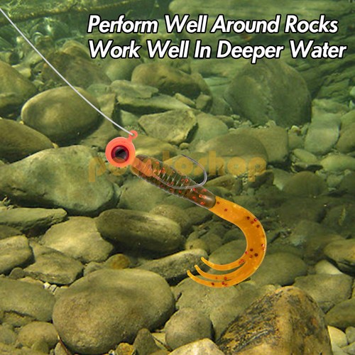 Easy to install your live baits or plastic. Make your soft plastic look like live prey. Eye jig head has sharp double barbs that can hold plastic securely.