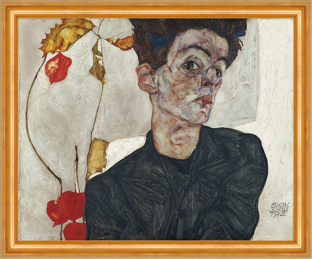 Der handvergoldete Massivholzrahmen wurde passend zum Alter des Motivs aufwändig antikisiert.