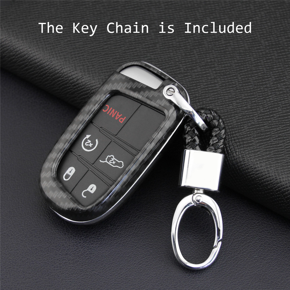 Carbon Fiber Car Key Case Cover Holder For Jeep Dodge Chrysler Accessories
