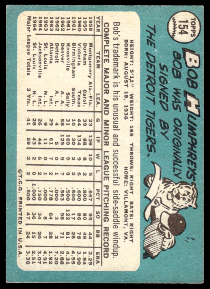 | 1965 Topps 154 Bob Humphreys |