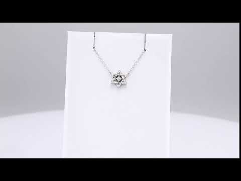 This simple and classic women's star or David Jewish pendant features one round natural diamonds. The diamond is prong set in solid 14k white gold. An 18" 14k white gold clasp lock chain included.