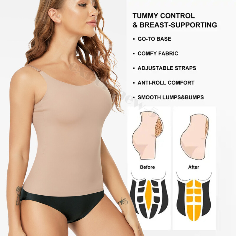🌹TUMMY CONTROL SEAMLESS SHAPEWEAR--This camisole for women features higher ealstic and seamless fabric,which offers more compression for your tummy,waist and back, smooth lumps and bumps without squeezing,helping you outline an attractive body curve.And the long-length over the upper hip for this padded tank tops for women is can be tailored for your needs,is also not rolling up,keep staying in place.