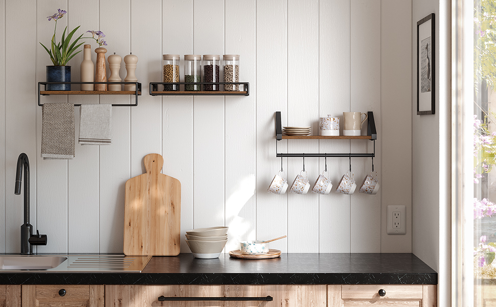 Wohin mit diesen Wandregalen? Überall dorthin, wo Sie mehr Stauraum benötigen! In die Küche für Gewürze, in den Flur für Dekoartikel, ins Wohnzimmer für Bilderrahmen, ins Schlafzimmer für Bücher – entdecken Sie mehr Möglichkeiten!