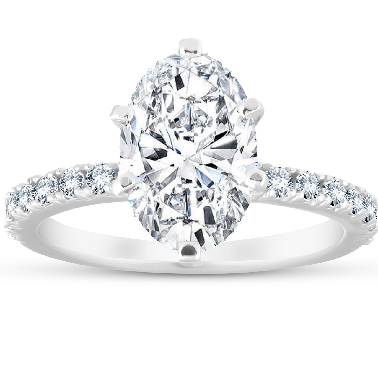 3 Ct Oval Diamond Engagement Ring (2 1/2ct center) 14k White Gold Lab Grown