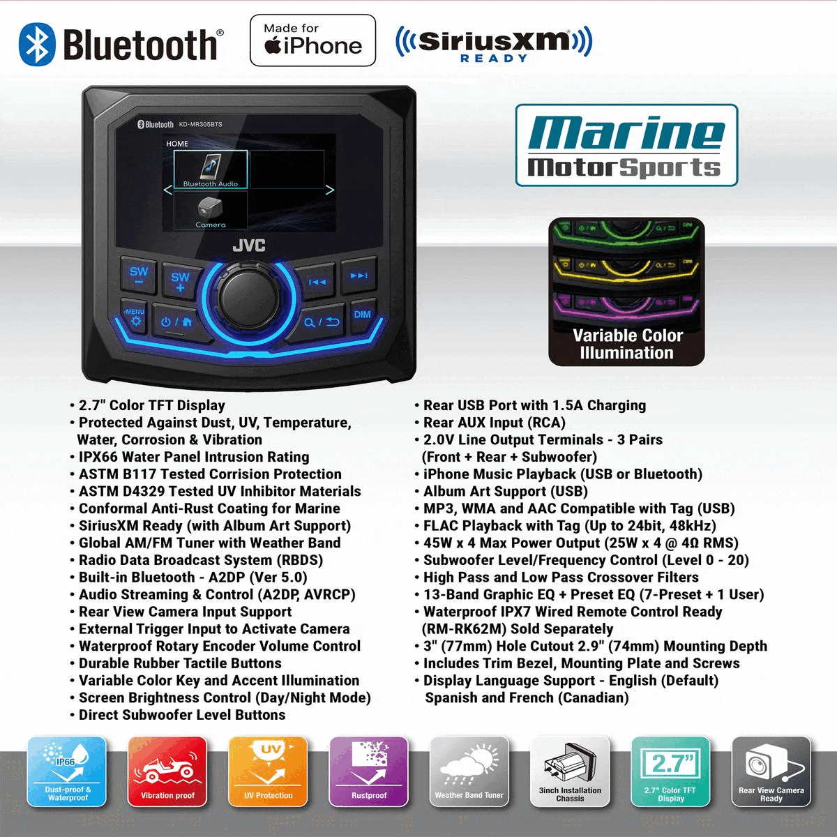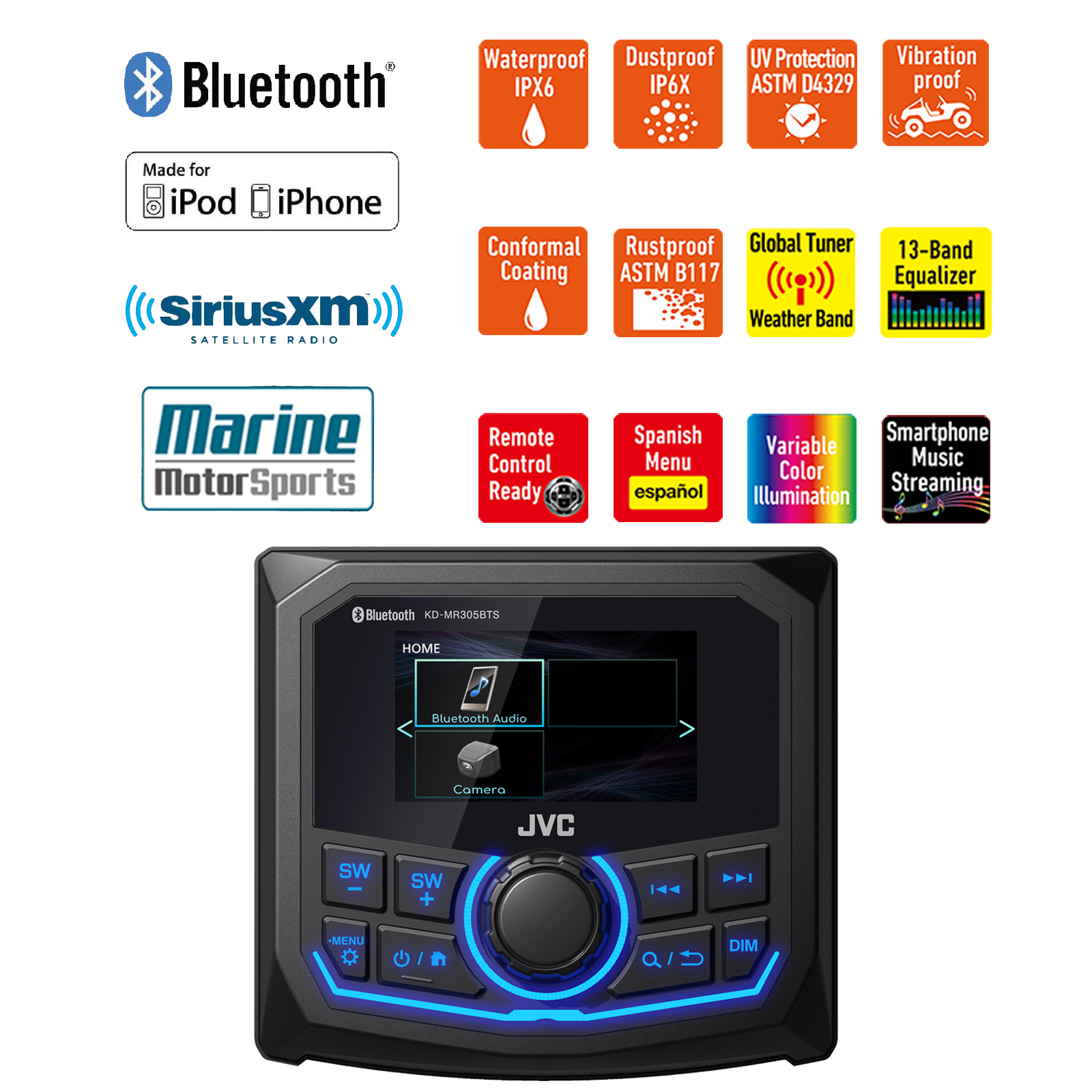JVC KD-MR305BTS Marine MotorSports 2.7" LCD Digital Media Bluetooth 2V IPX66 Rear USB AUX AM/FM Stereo Receiver