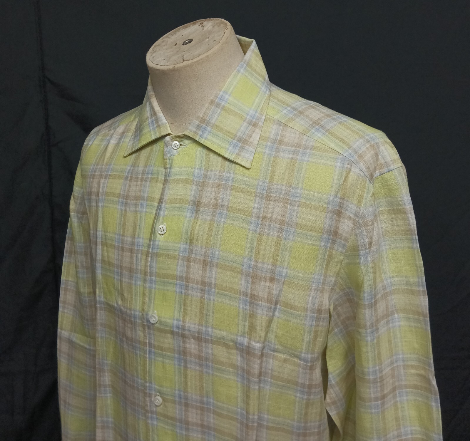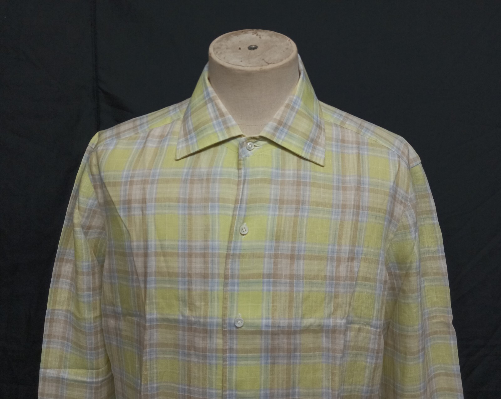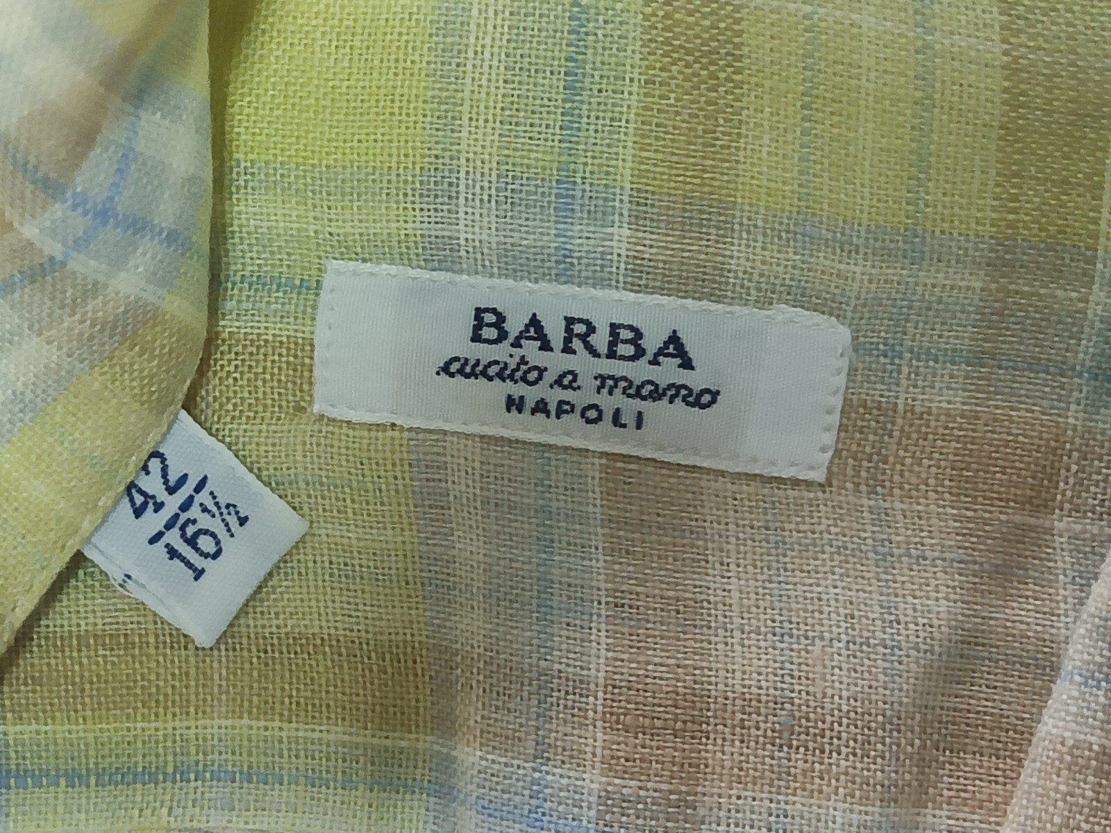 Awesome Barba Napoli multicolor plaid men's dress shirt long sleeves with button front authenticity guaranteed. The shirt is pre-owned still in excellent condition, there are no holes, tears, stains. It has been laundered clean and fresh ready to wear. The shirt has spread collar with 6 mother of thick pearl buttons closure on front straight hem. The color is multicolor with plaid pattern. Fabric is 100% linen. Don't miss out awesome and luxury shirt.