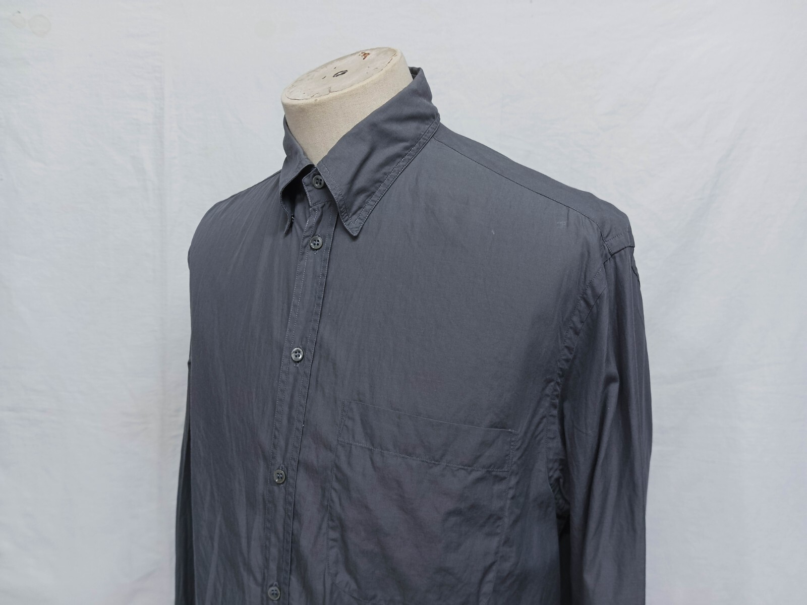 Luxury Giorgio Armani Black Label solid gray men's dress shirt long sleeve with buttons front authenticity guaranteed. Check out awesome designer shirt. The shirt has hidden button-down collar, single chest button pocket on left with 7 mother of pearl buttons closure on front. The color is gray with solid pattern. Fabric is 100% cotton. The item is pre-owned still in excellent condition no holes, tears, stains. It has been laundered clean and fresh ready to wear. Don't miss out luxury designer shirt.