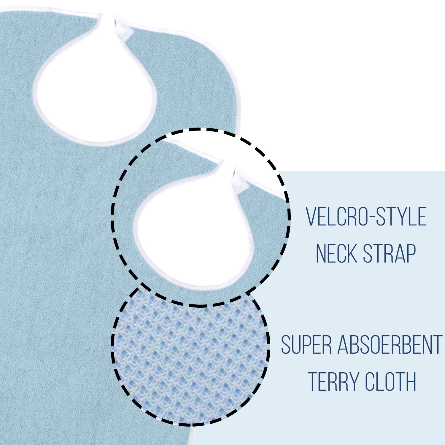 Wave Deluxe Adult Terry Cloth Bibs with Velcro closure and Catch – Blue - MADE IN THE USA